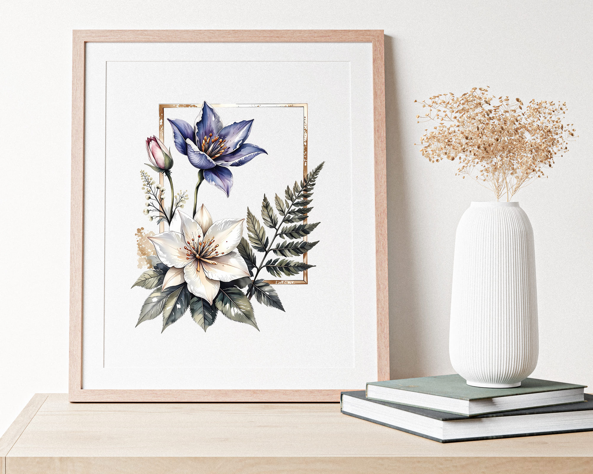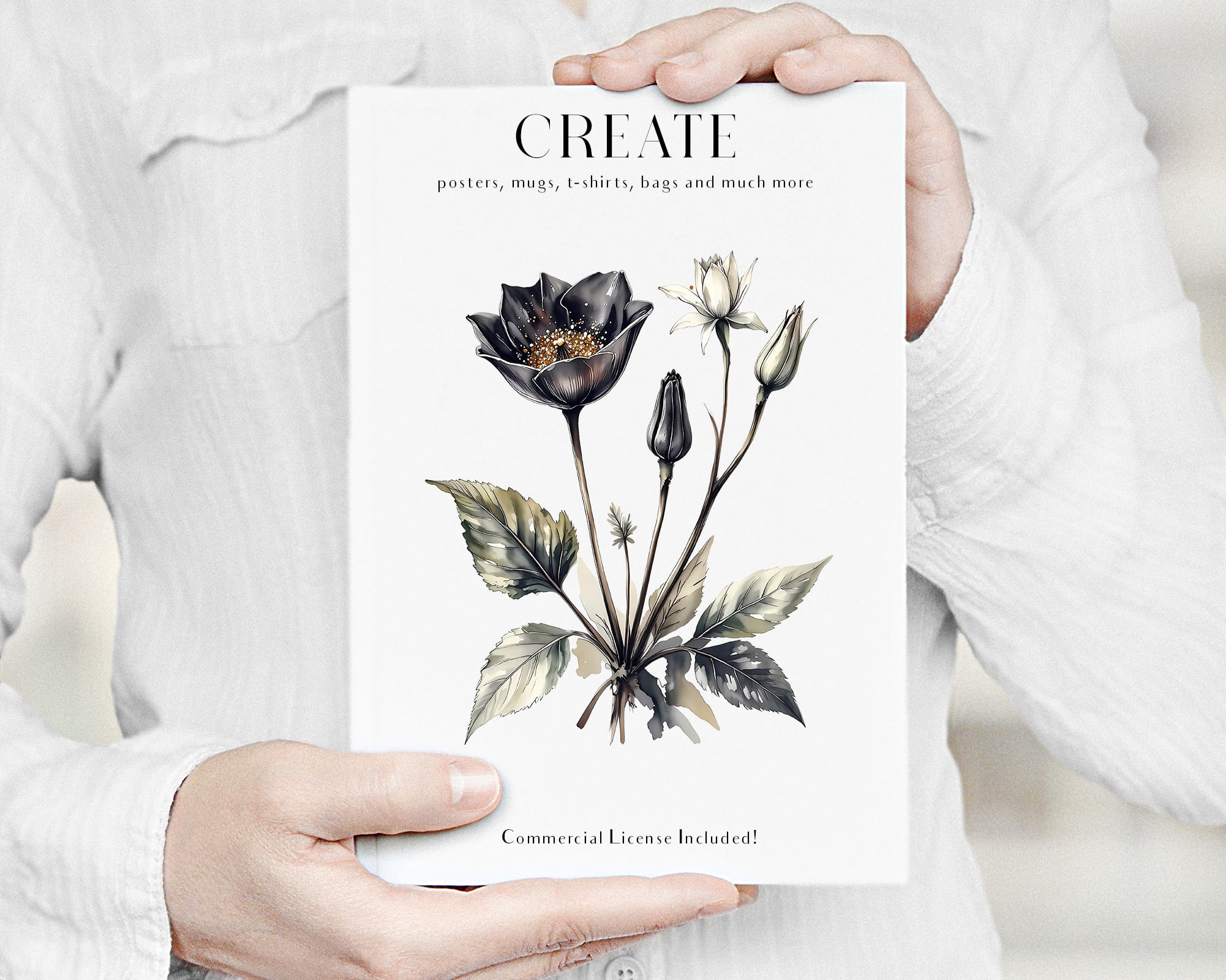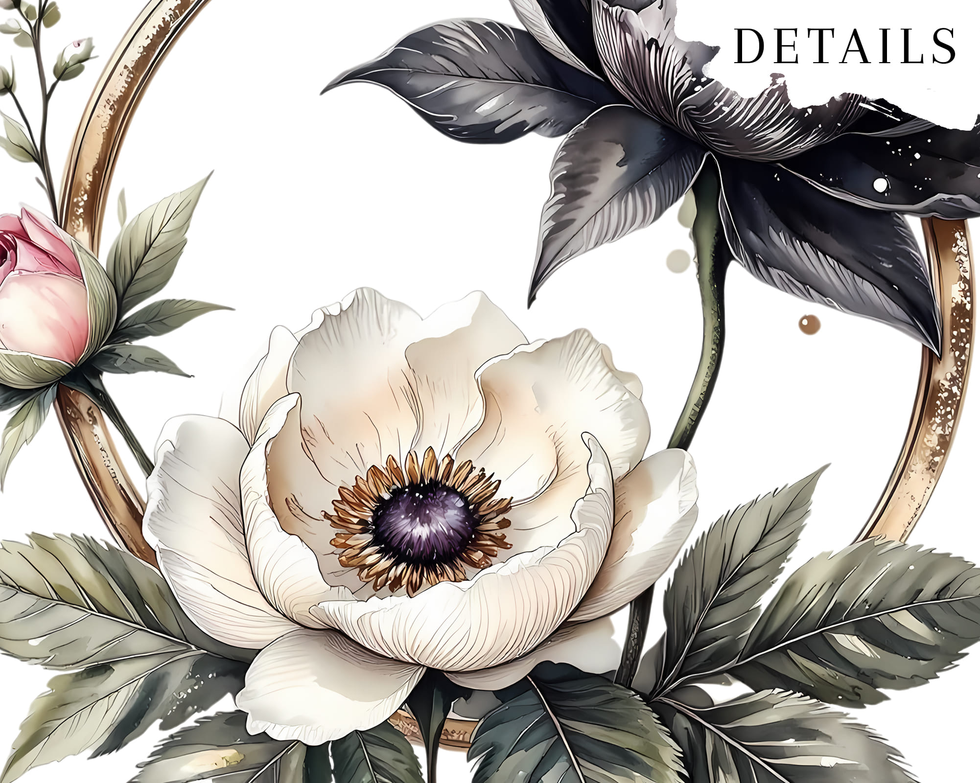 A sophisticated collection of 50 PNG floral illustrations in timeless black-and-white tones. This set features elegant lilies, buds, leaves, and botanical compositions — perfect for modern branding, wedding signage, aesthetic wall art, scrapbooking projects, invitations, and minimalist stationery.
