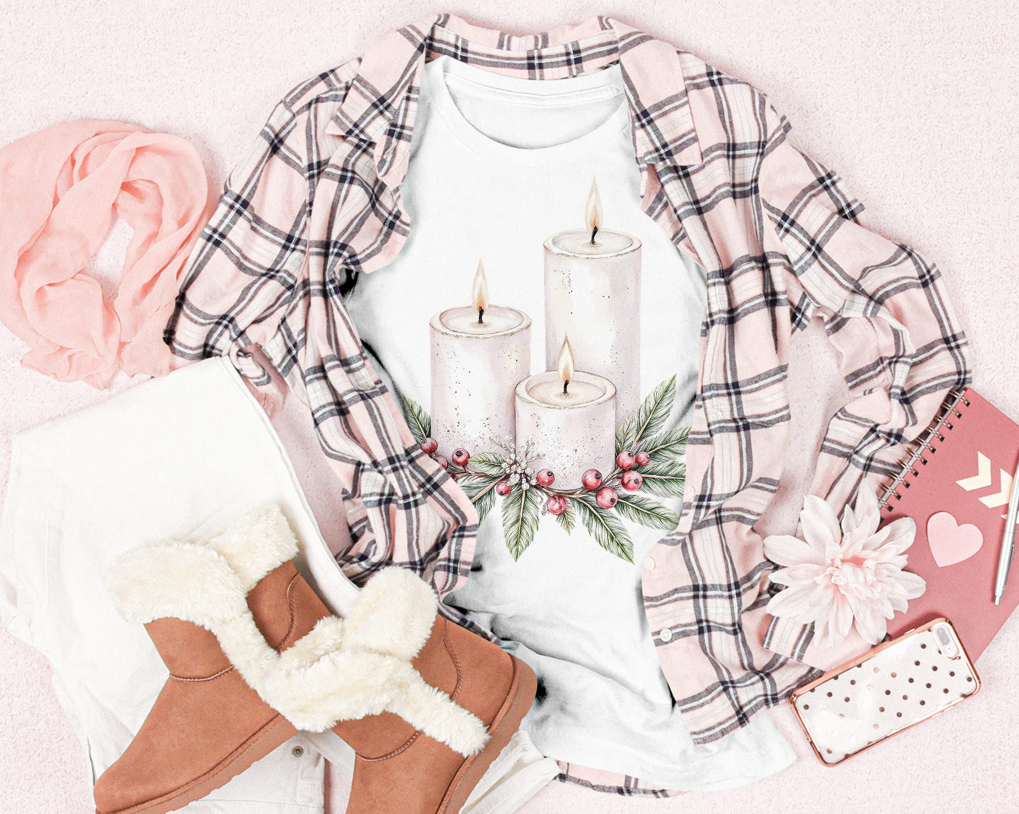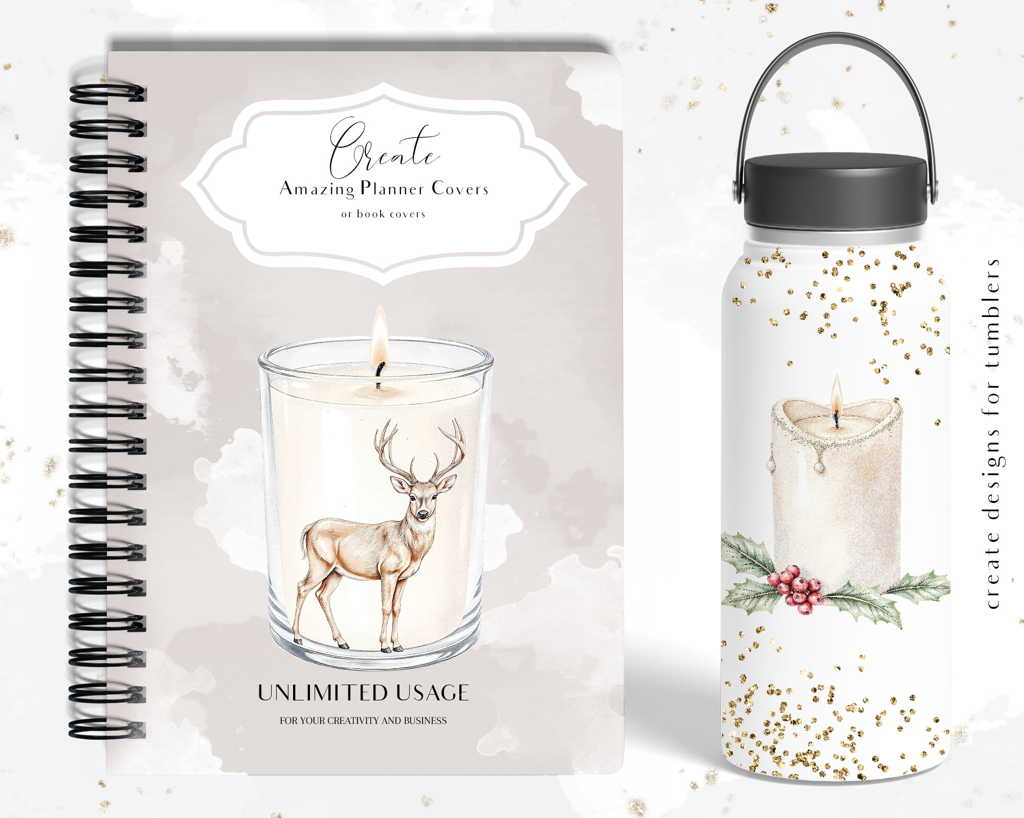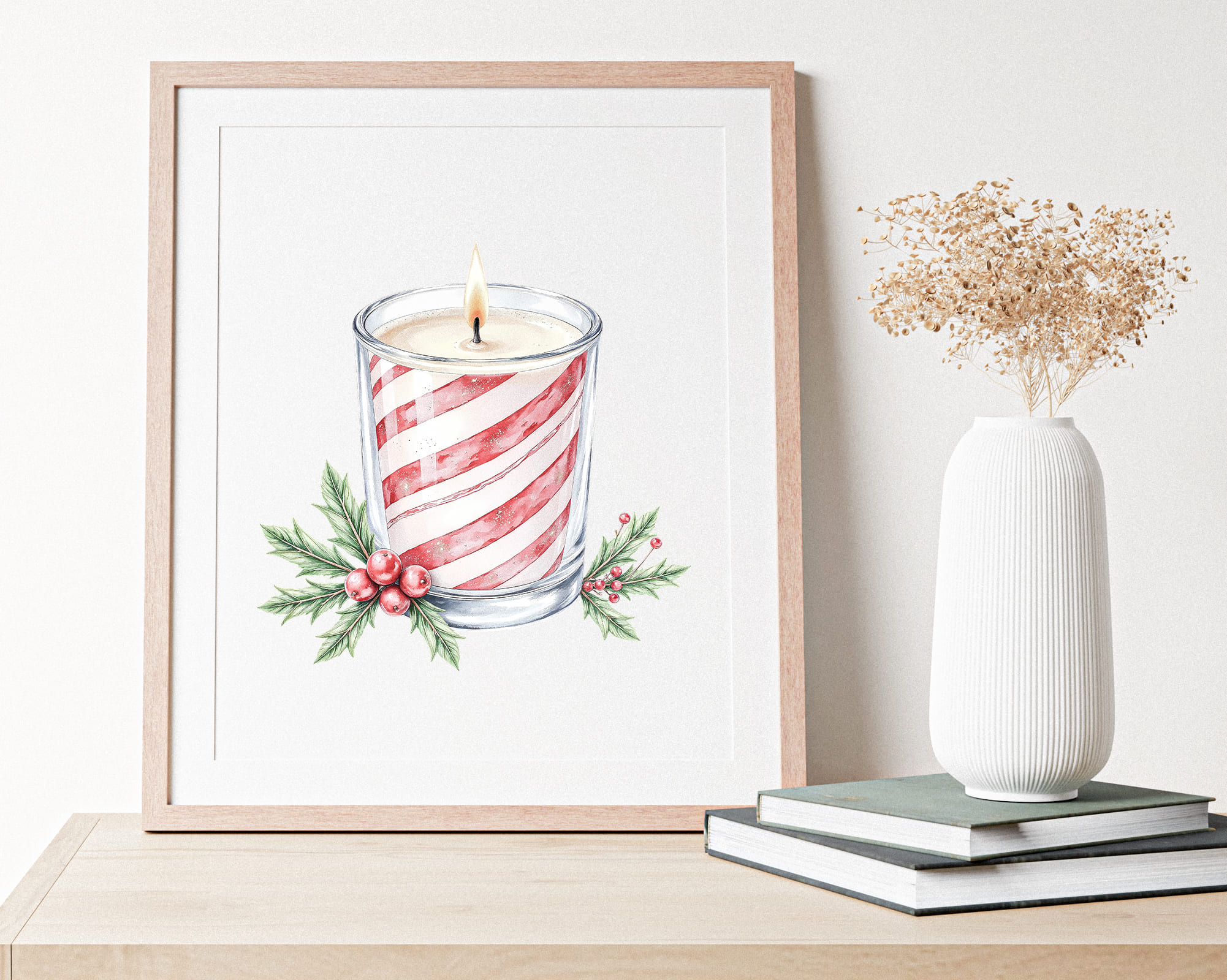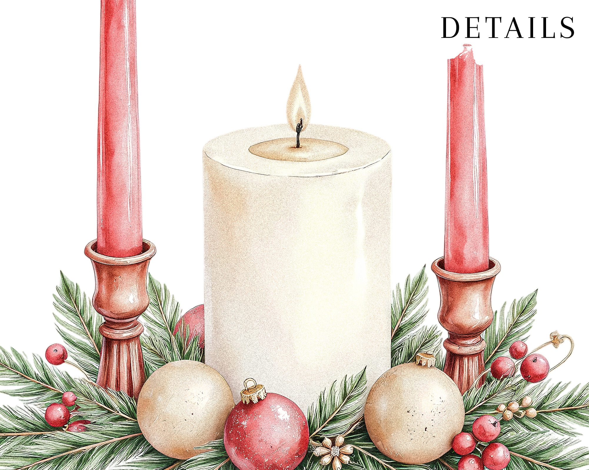 Christmas Candle Clipart includes 30 festive candle illustrations in PNG format. Each file is high resolution (300 DPI) with transparent background.