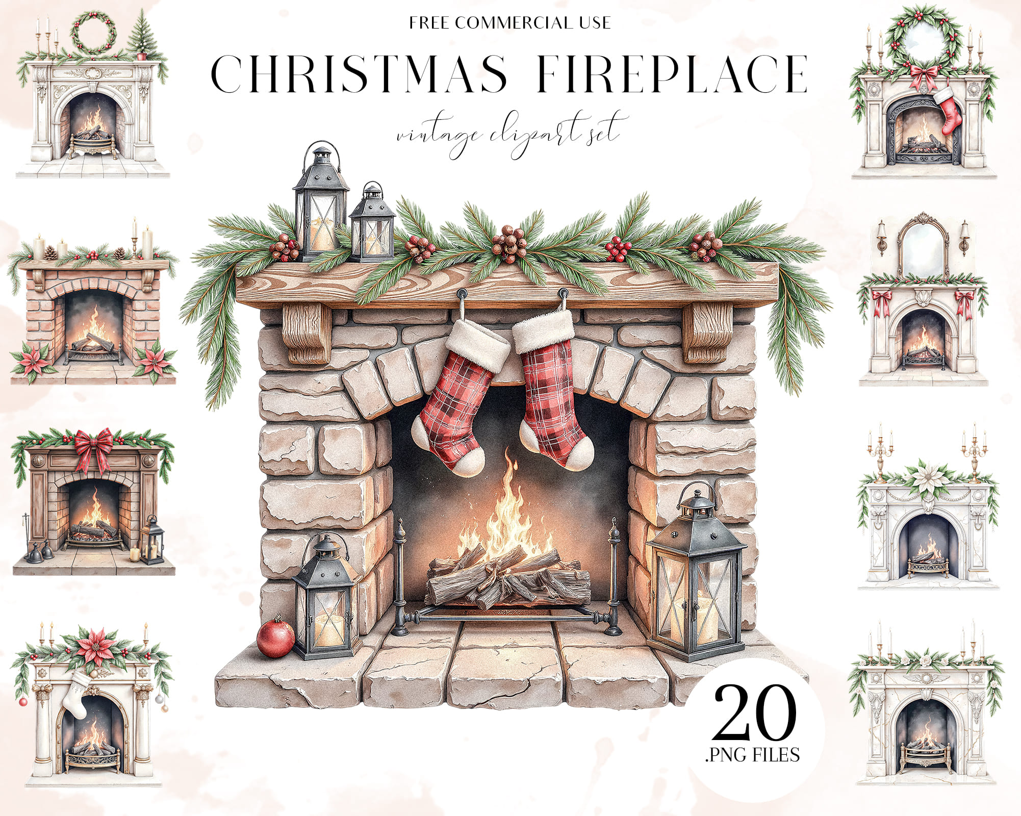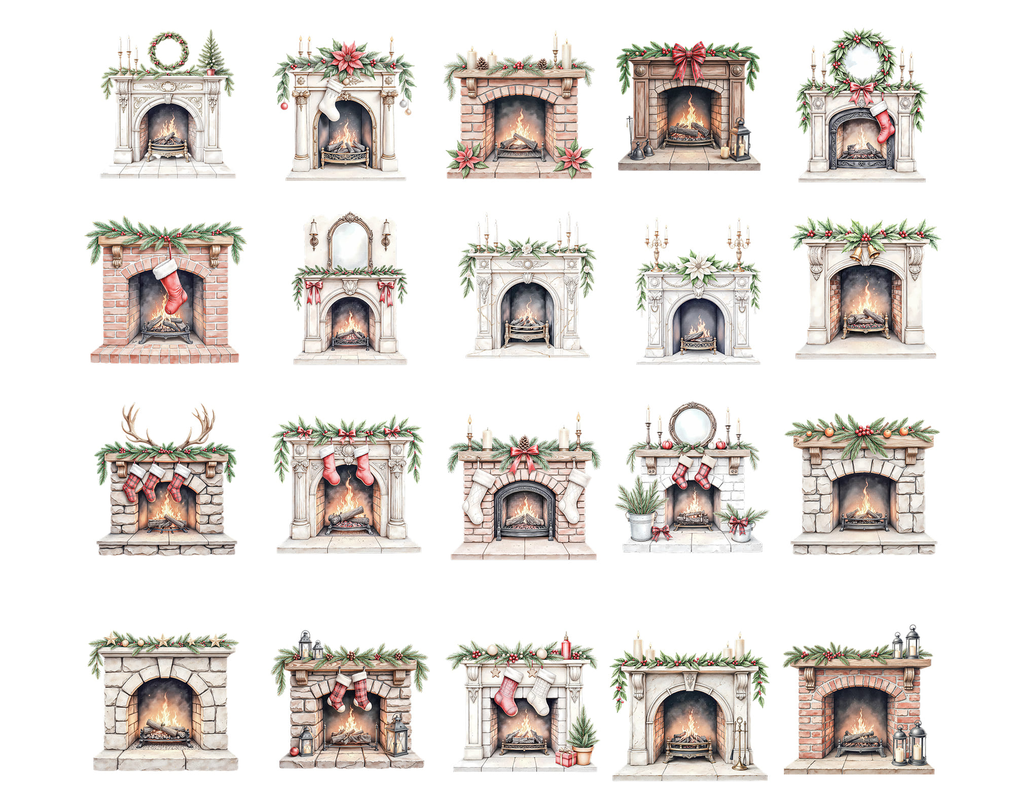 Christmas Fireplace Clipart is a warm and cozy collection of 20 holiday fireplaces in PNG format. Transparent backgrounds and 300 DPI resolution make them perfect for print and digital projects.