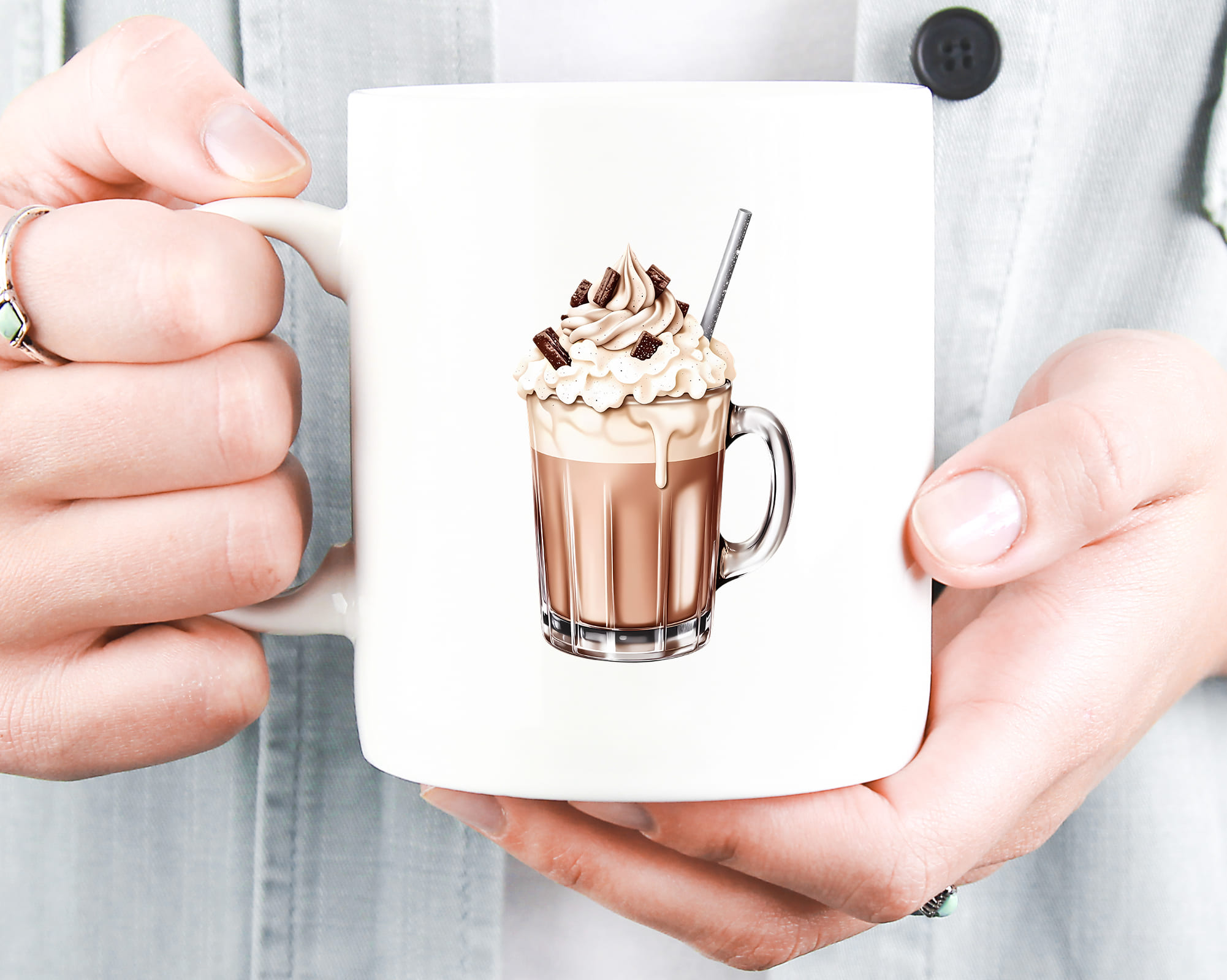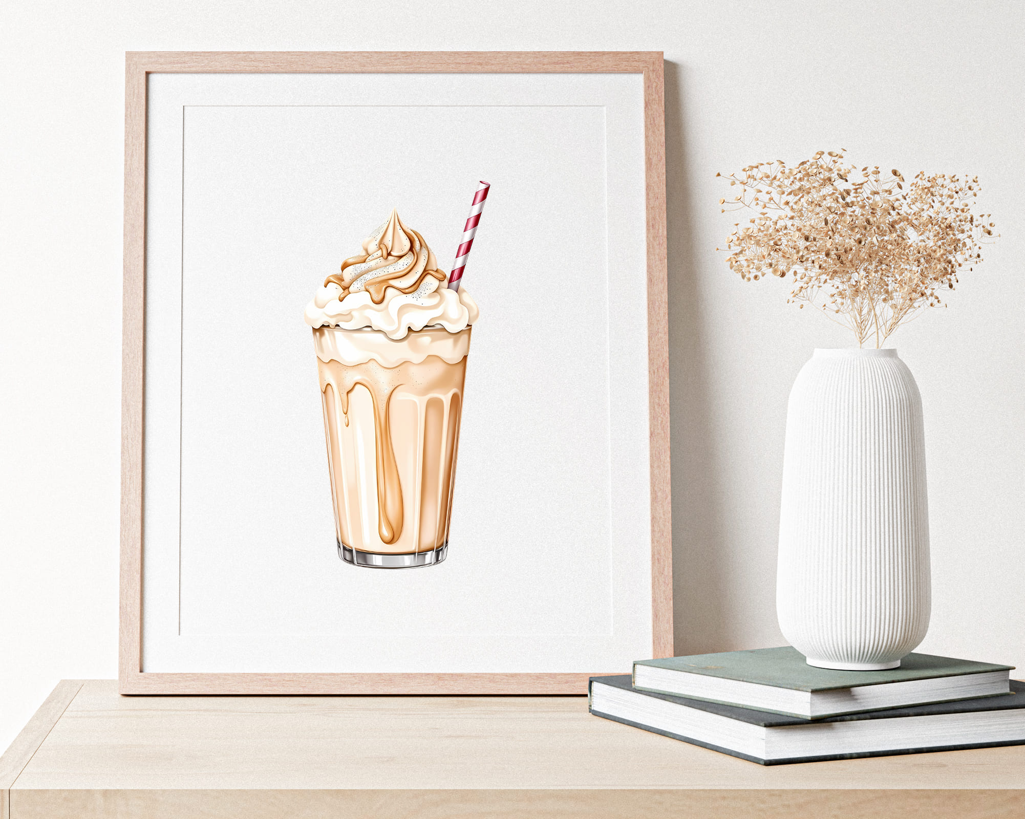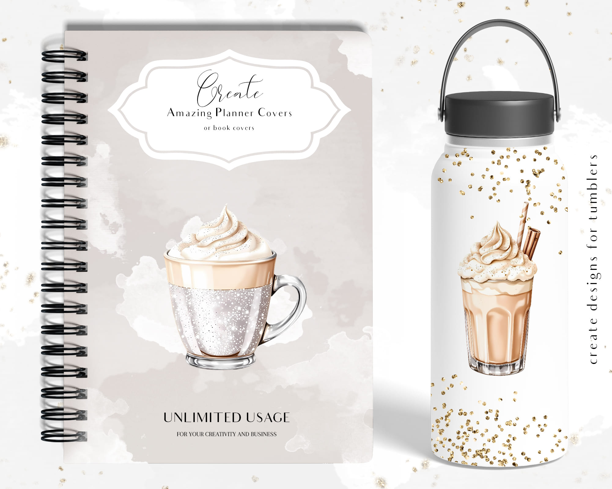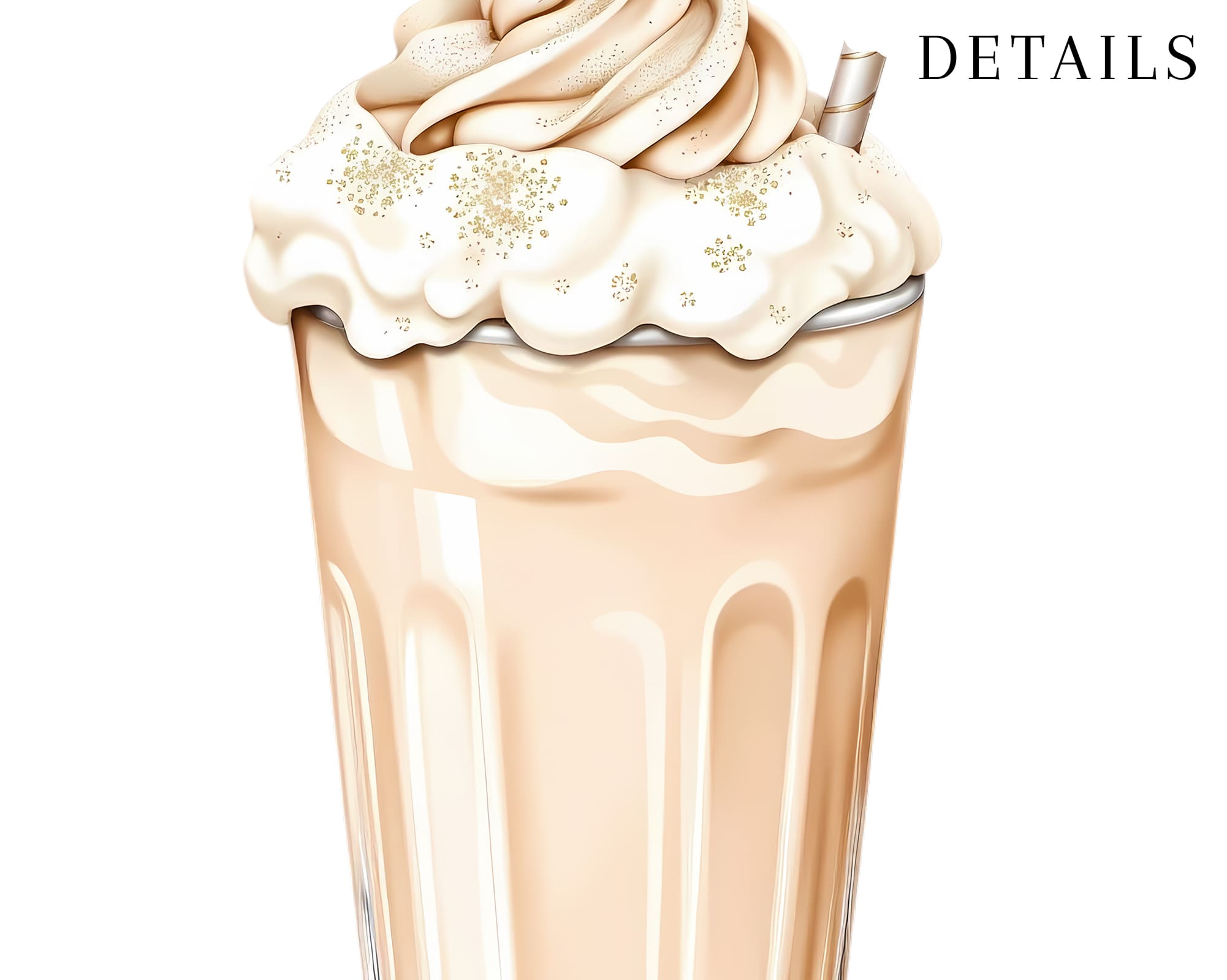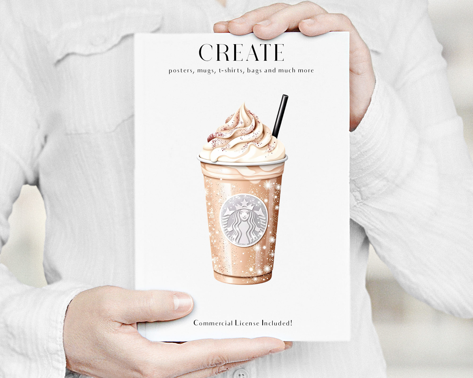 A premium collection of 100 PNG coffee illustrations featuring lattes, iced coffee, cappuccino, espresso, mocha, frappes, and whipped toppings. Perfect for café menus, branding, stickers, recipe cards, sublimation, and minimalist kitchen wall art.