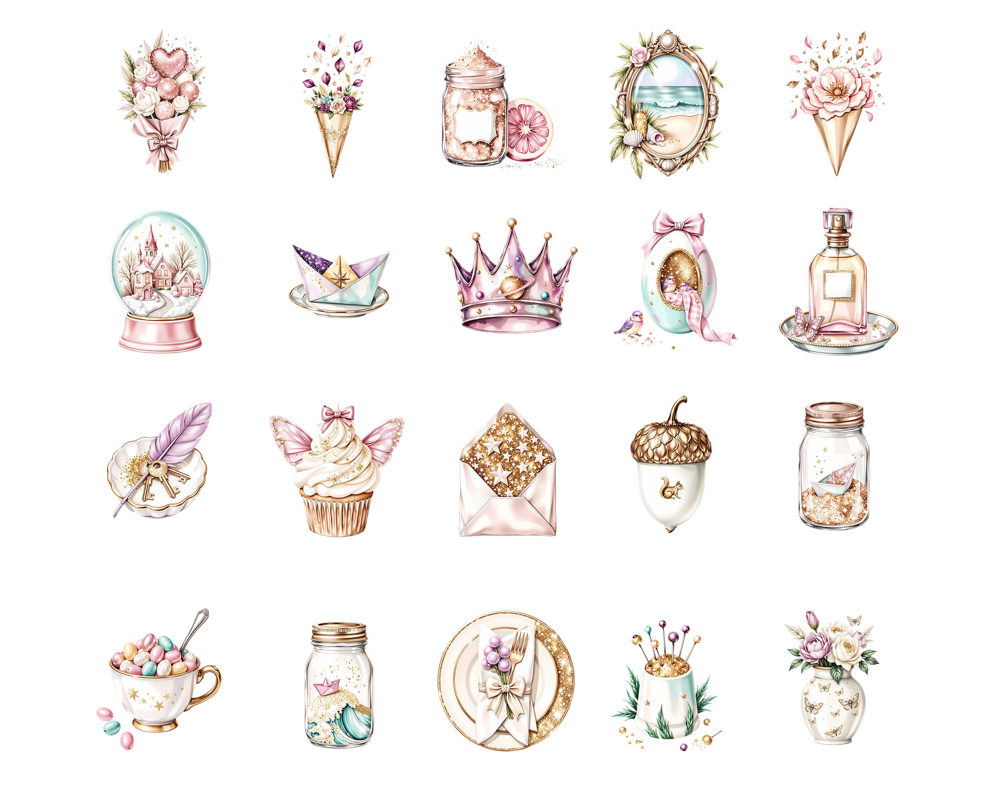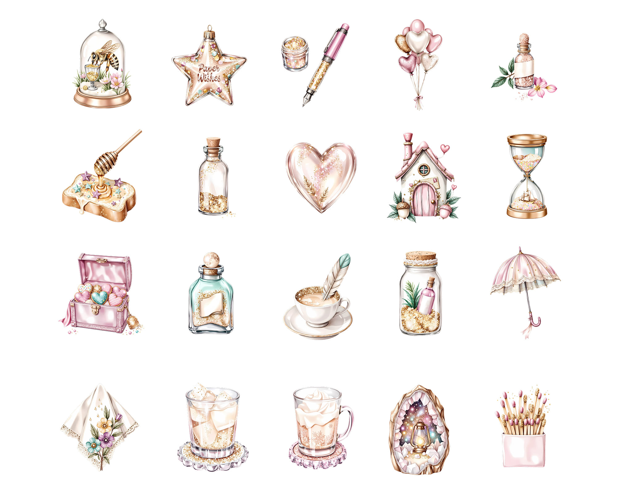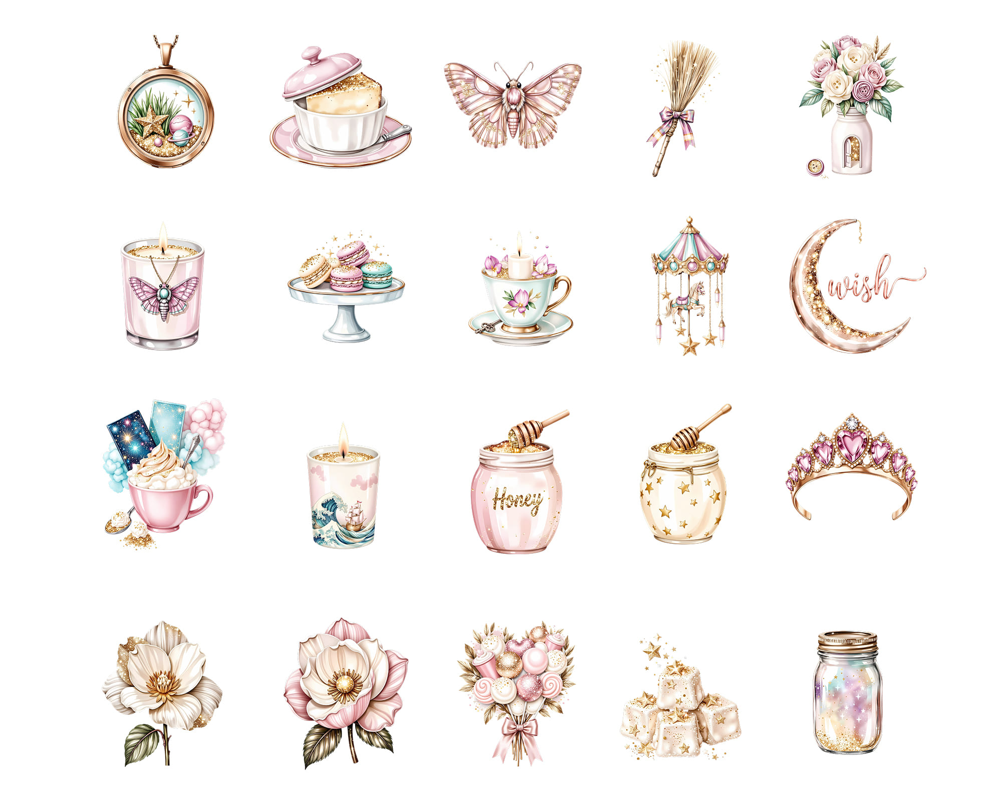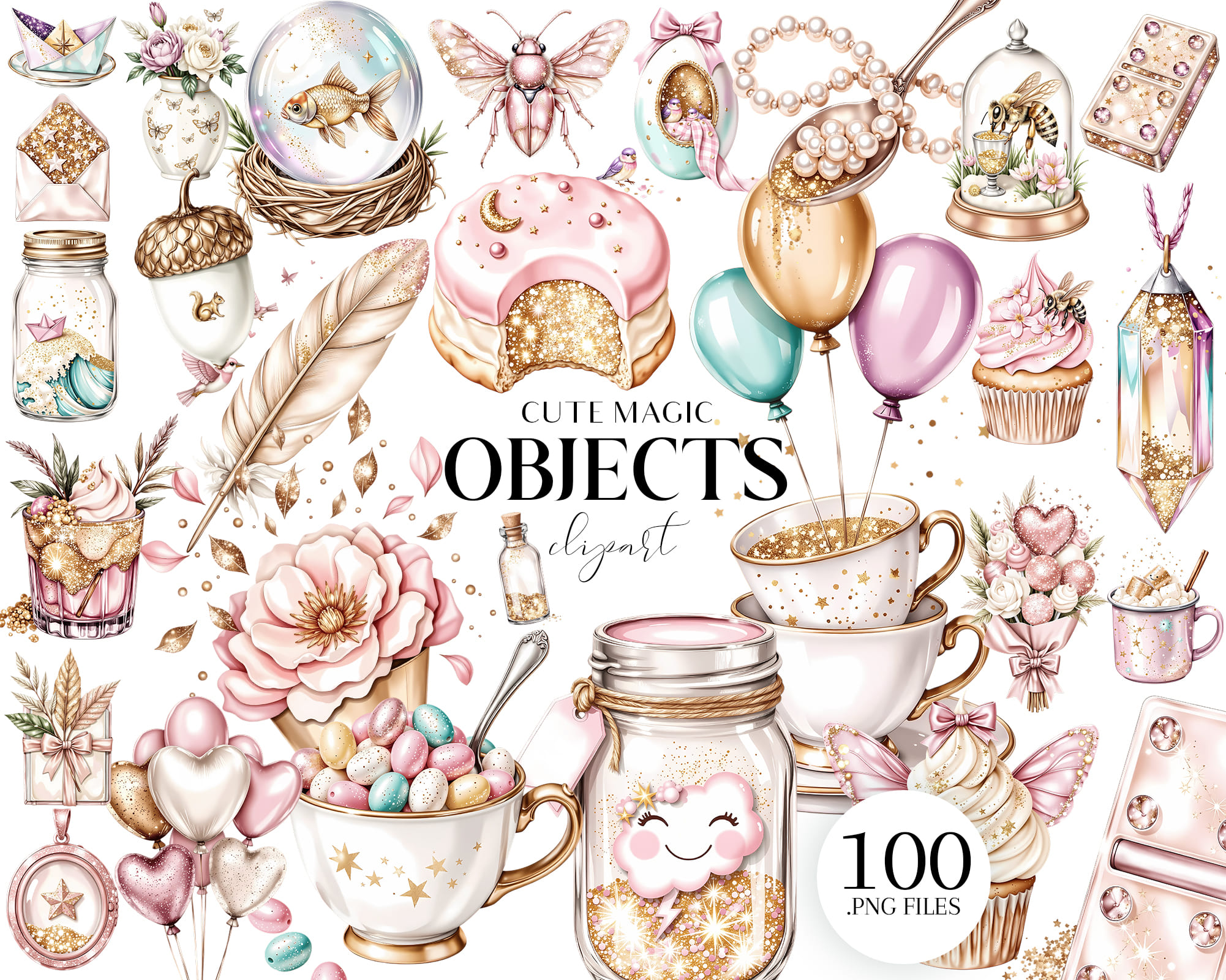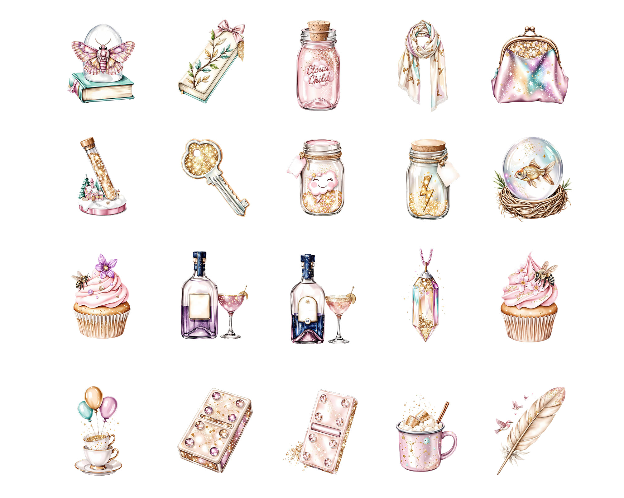 Brighten your creations with this Cute Magic Objects Clipart ☁️. Perfect for planners, invitations, stickers, mugs, and greeting cards. Includes 100 PNG files with transparent backgrounds.