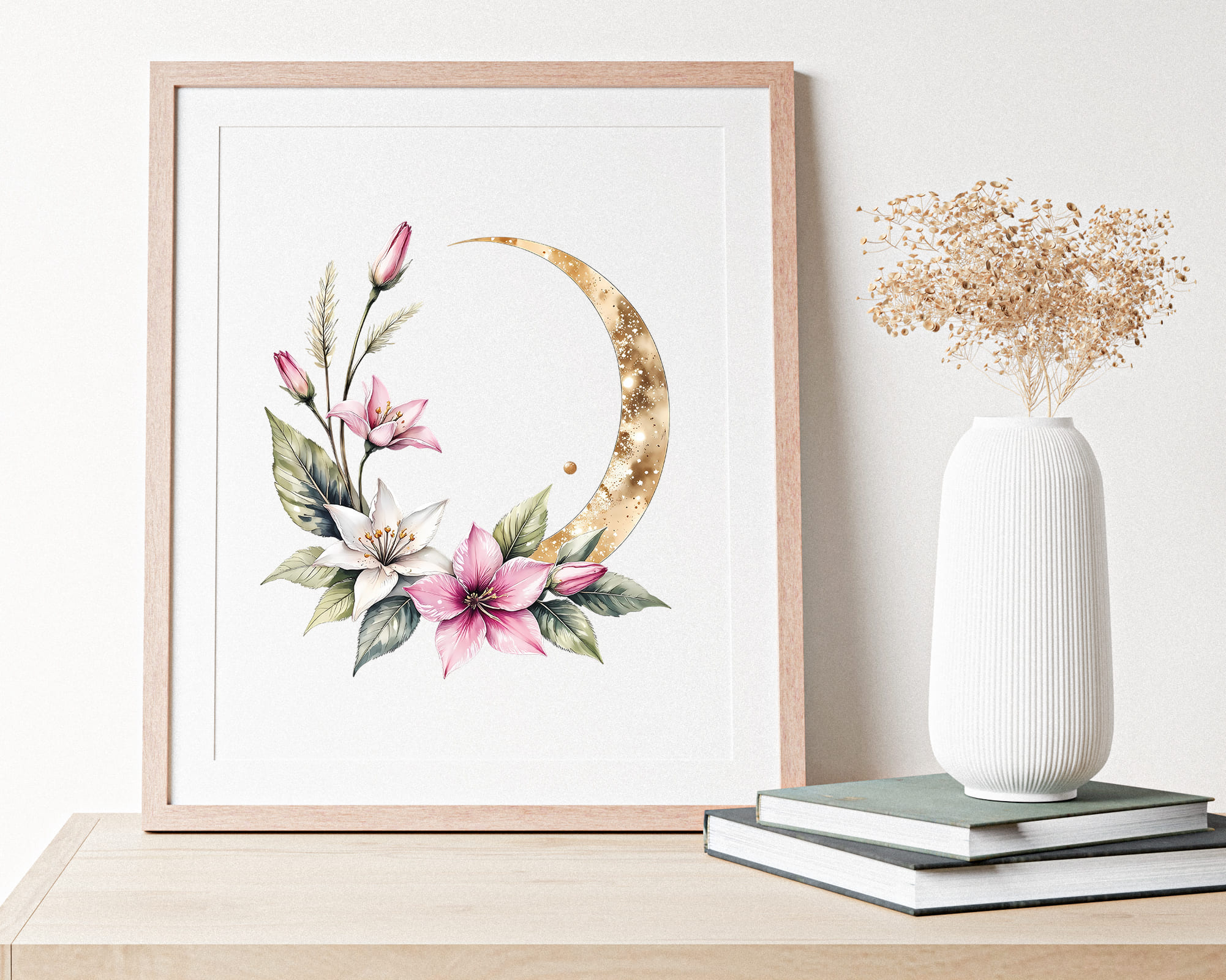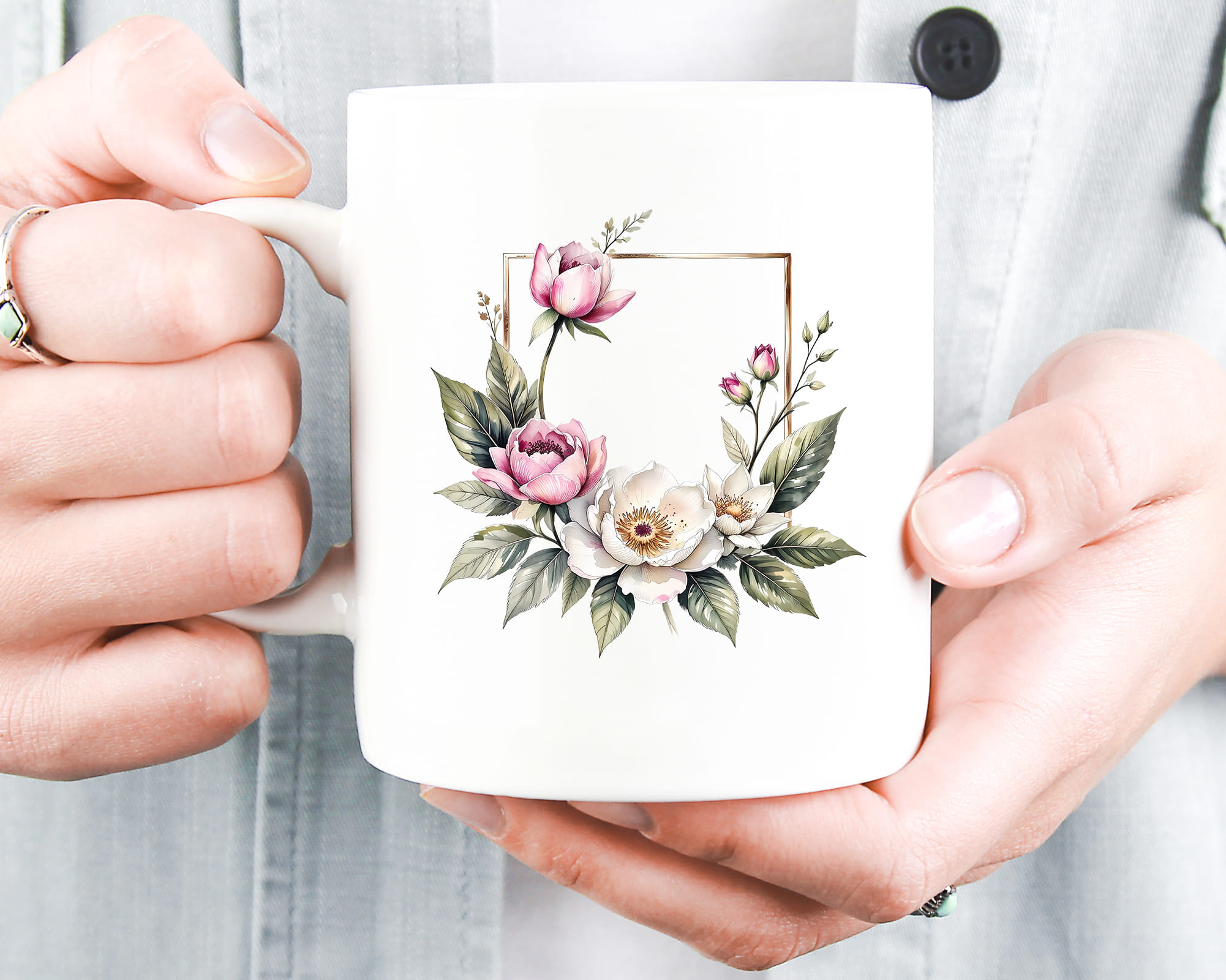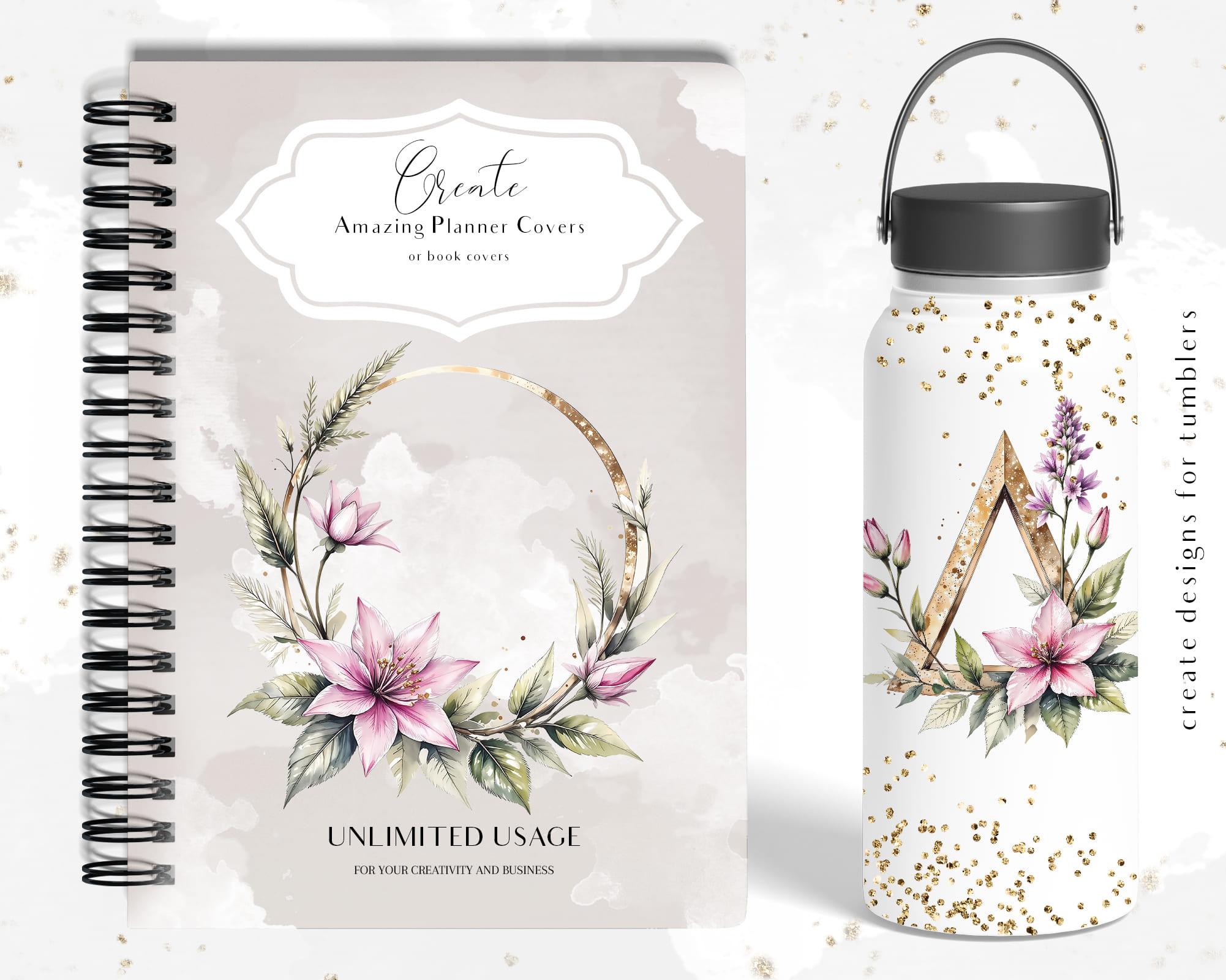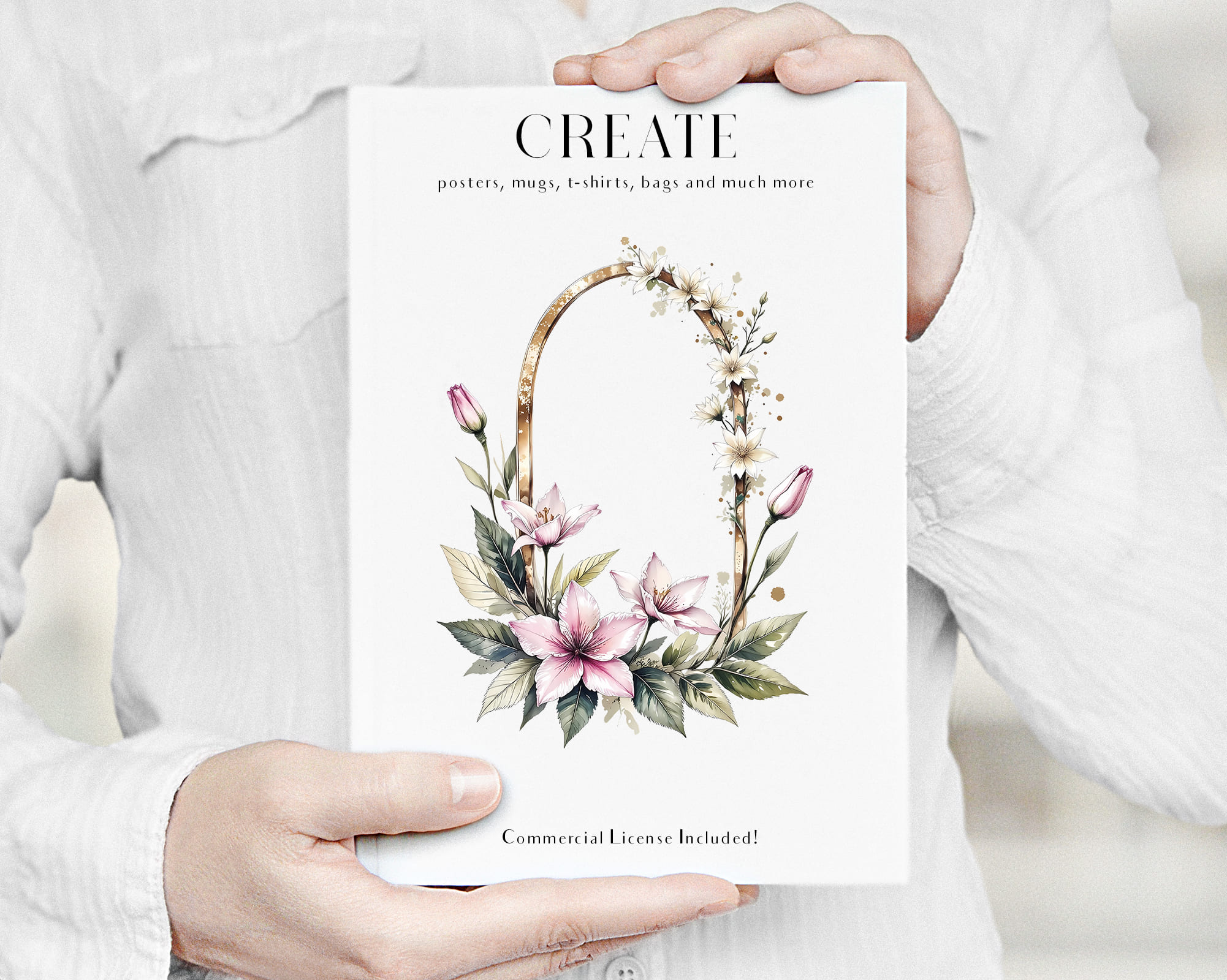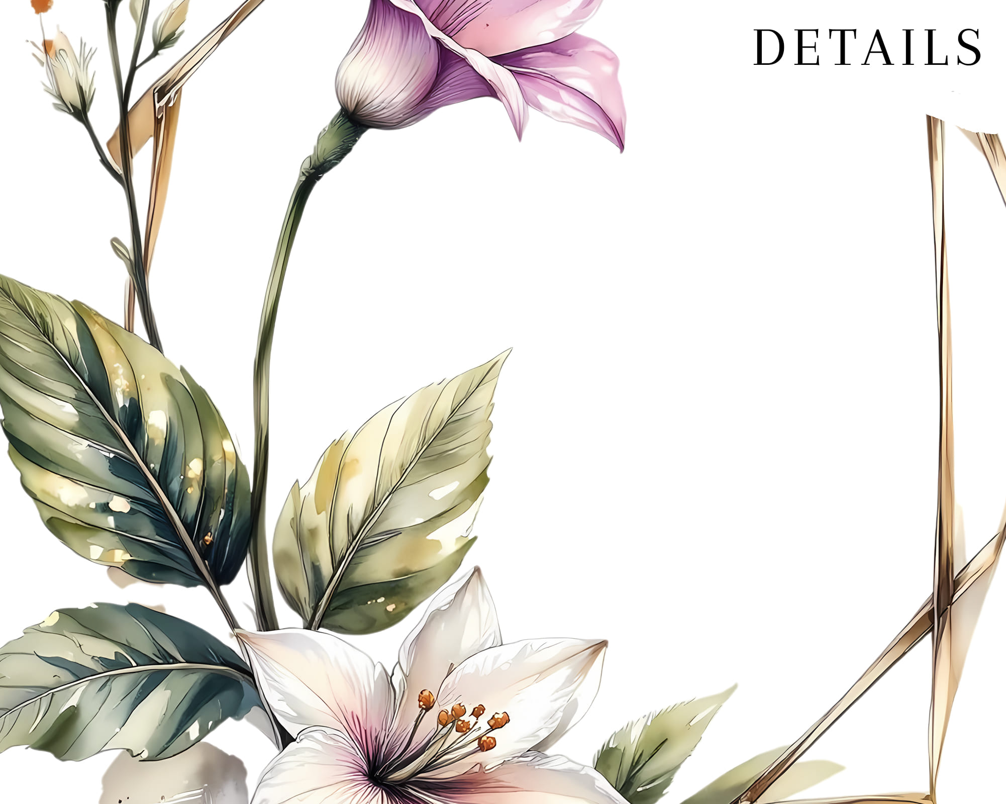 A luxurious set of 50 PNG geometric frames decorated with soft pink florals, gold accents, and botanical details. Ideal for elegant wedding suites, branding, sublimation projects, stationery, and printable decor.