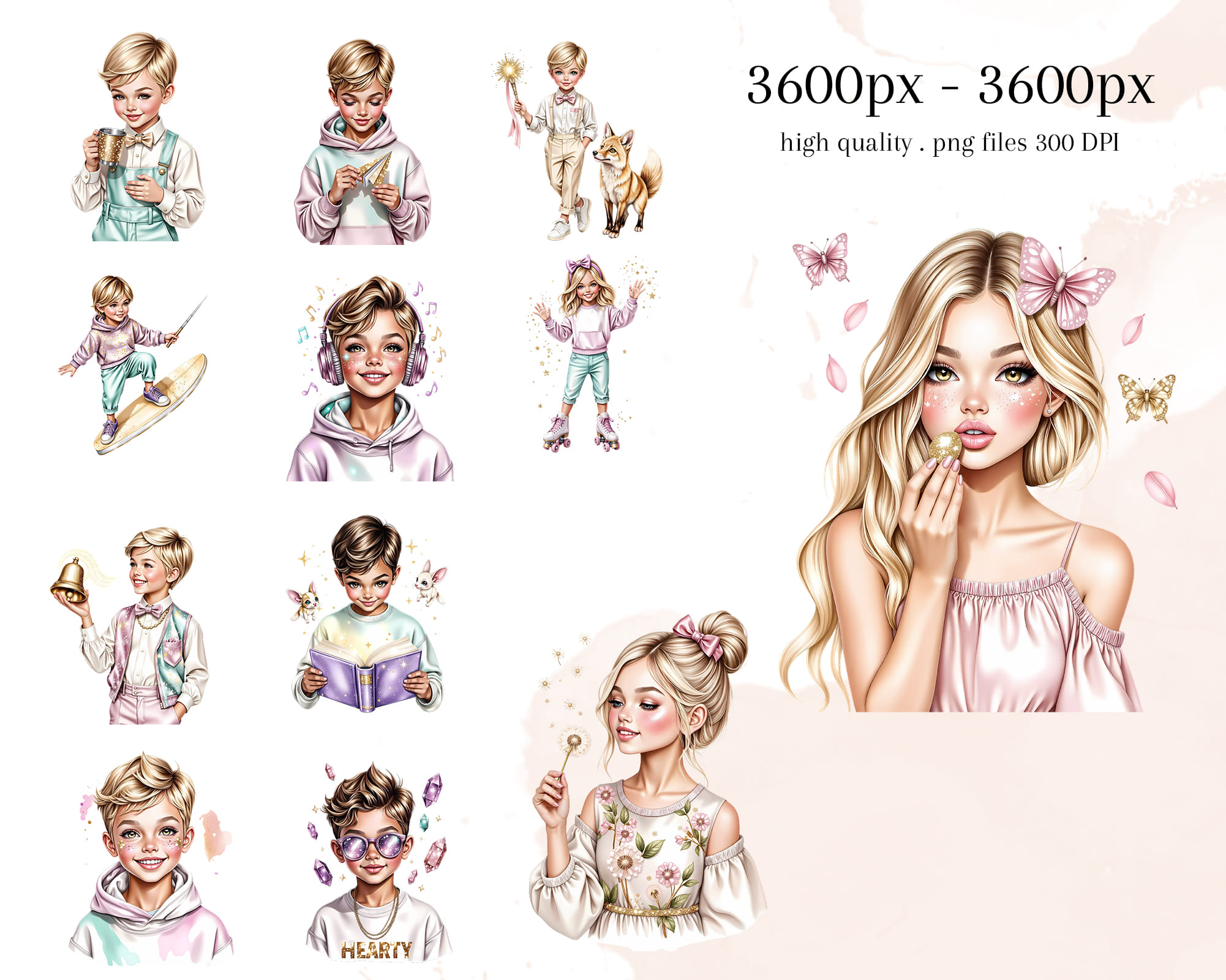 Bring magic to your projects with the Little Dreamers Clipart set ✨. Perfect for children’s cards, wall art, planners, stickers, and storybooks. Includes 50 PNG files with transparent backgrounds.