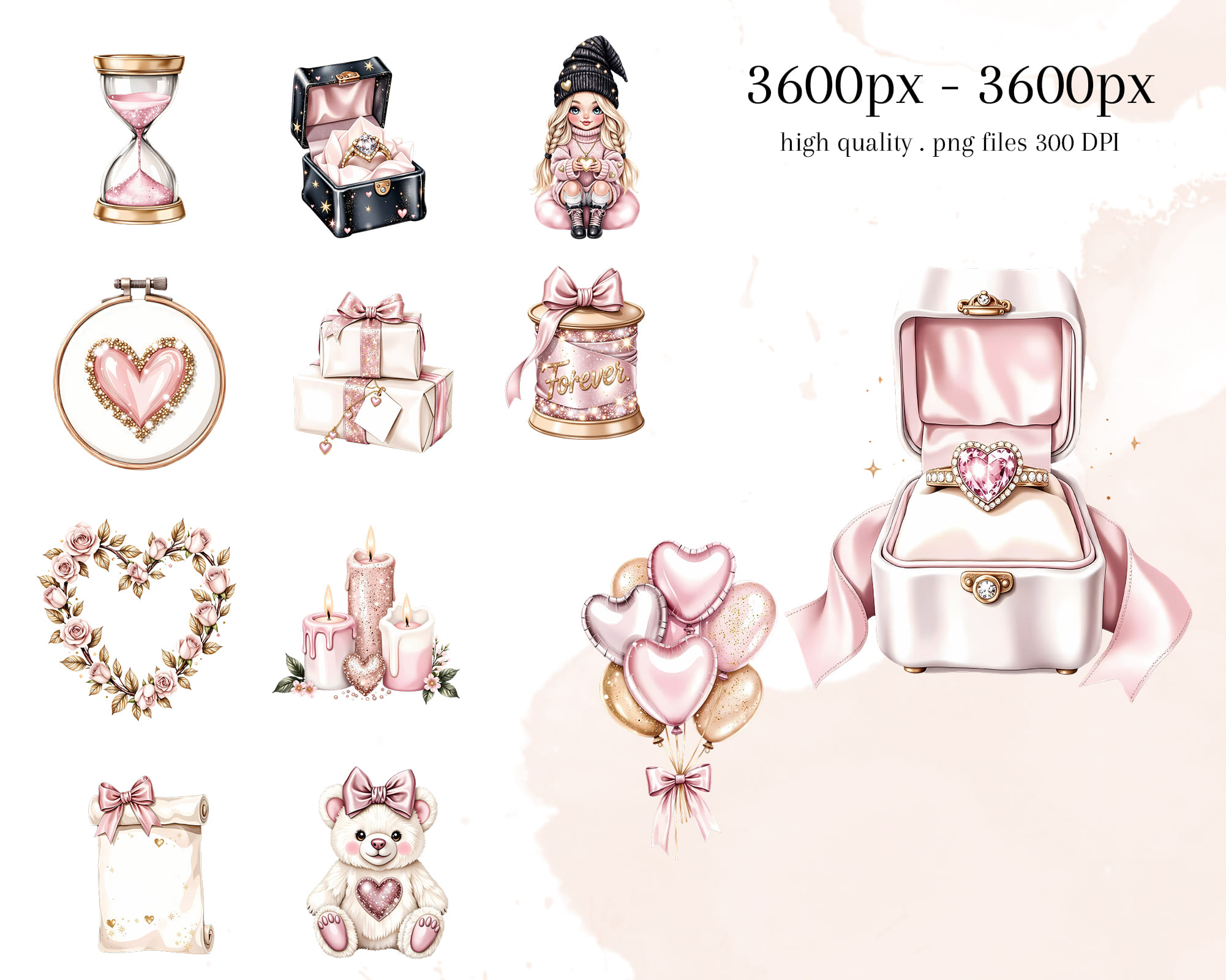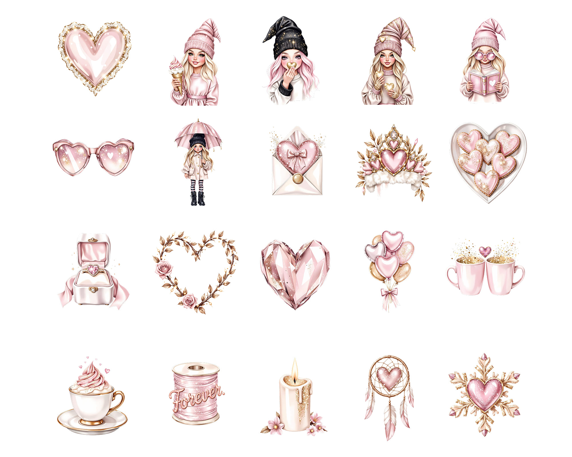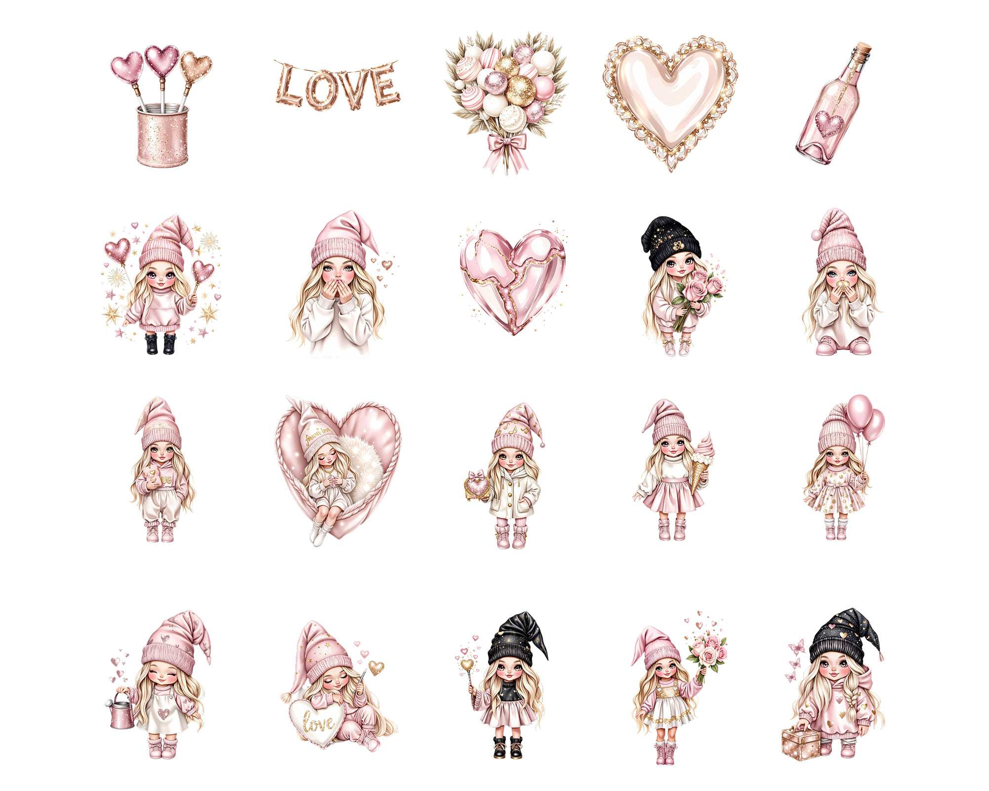 Celebrate love with these stylish Pink and Black Gnome Girls 💖. Perfect for Valentine cards, planners, mugs, stickers, or scrapbooks. Includes 50 PNG files with transparent backgrounds.