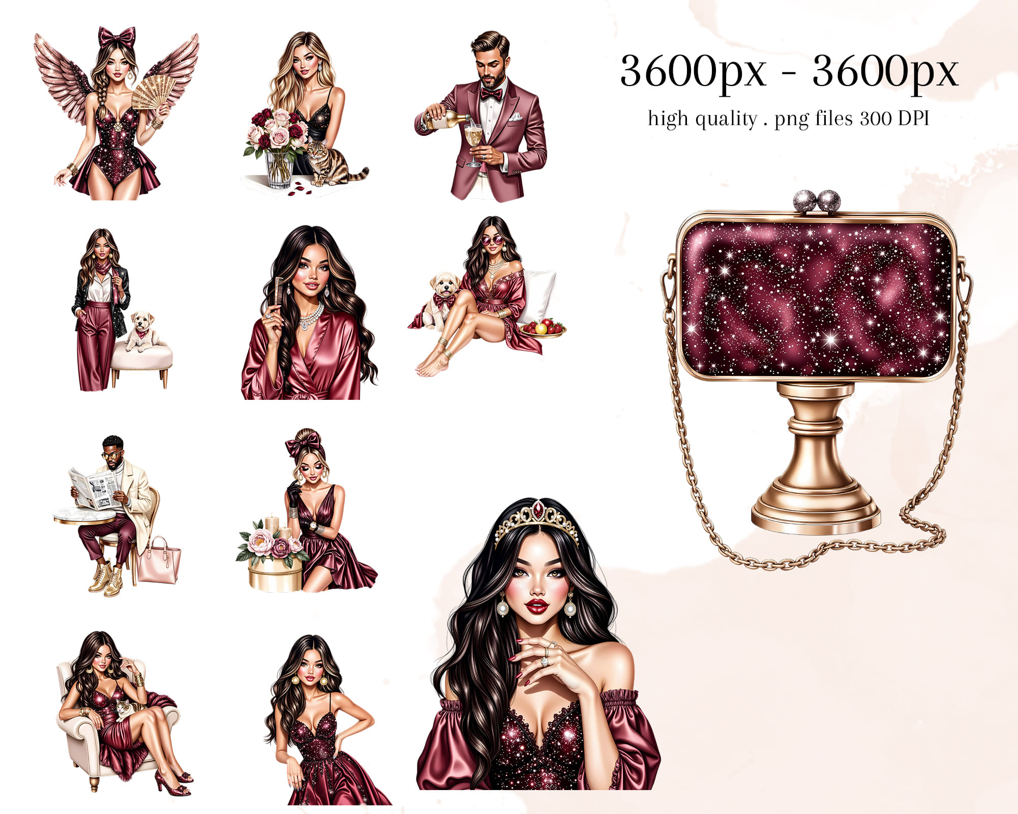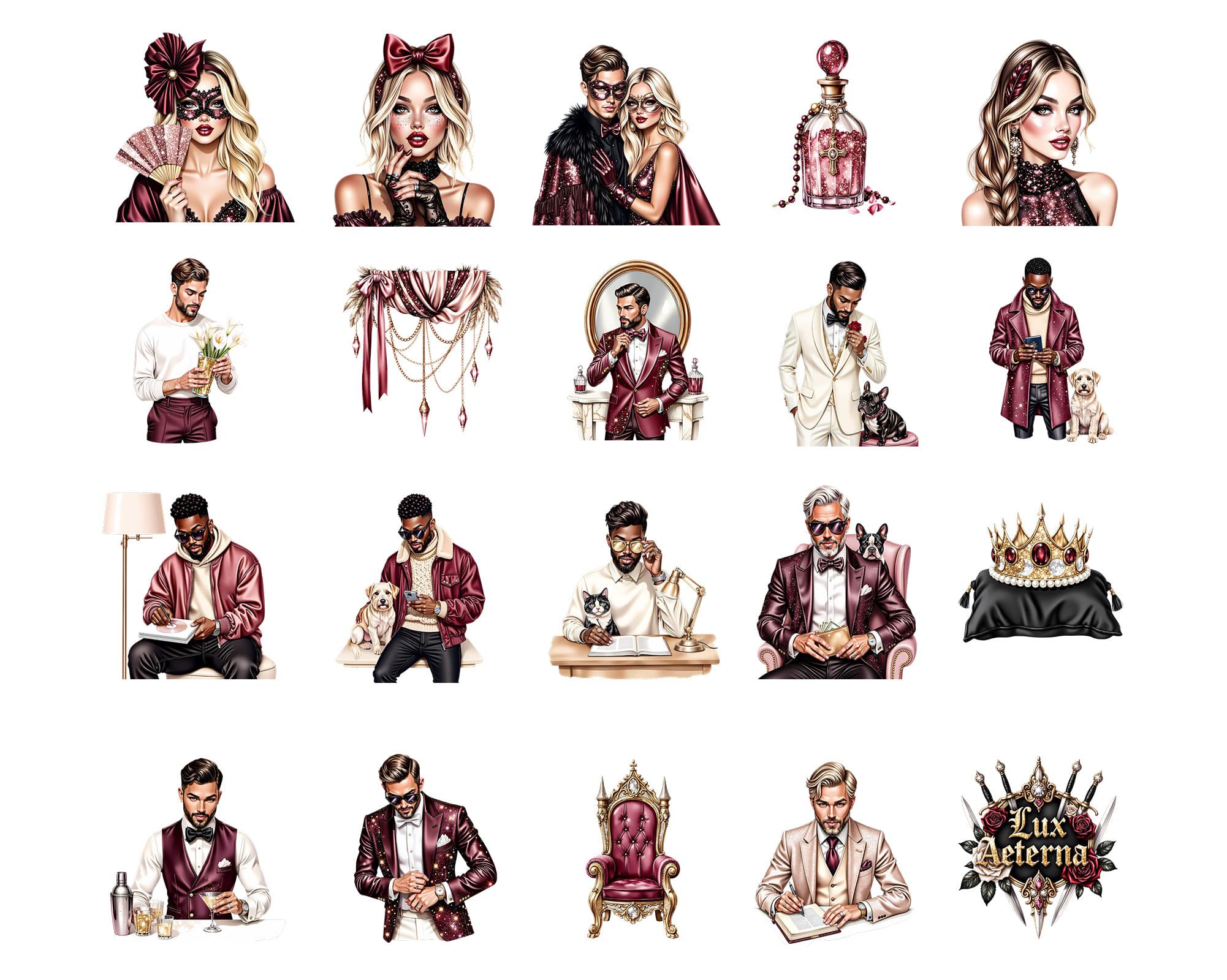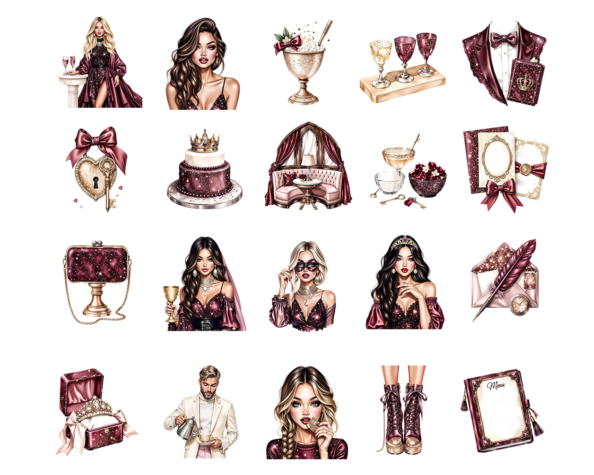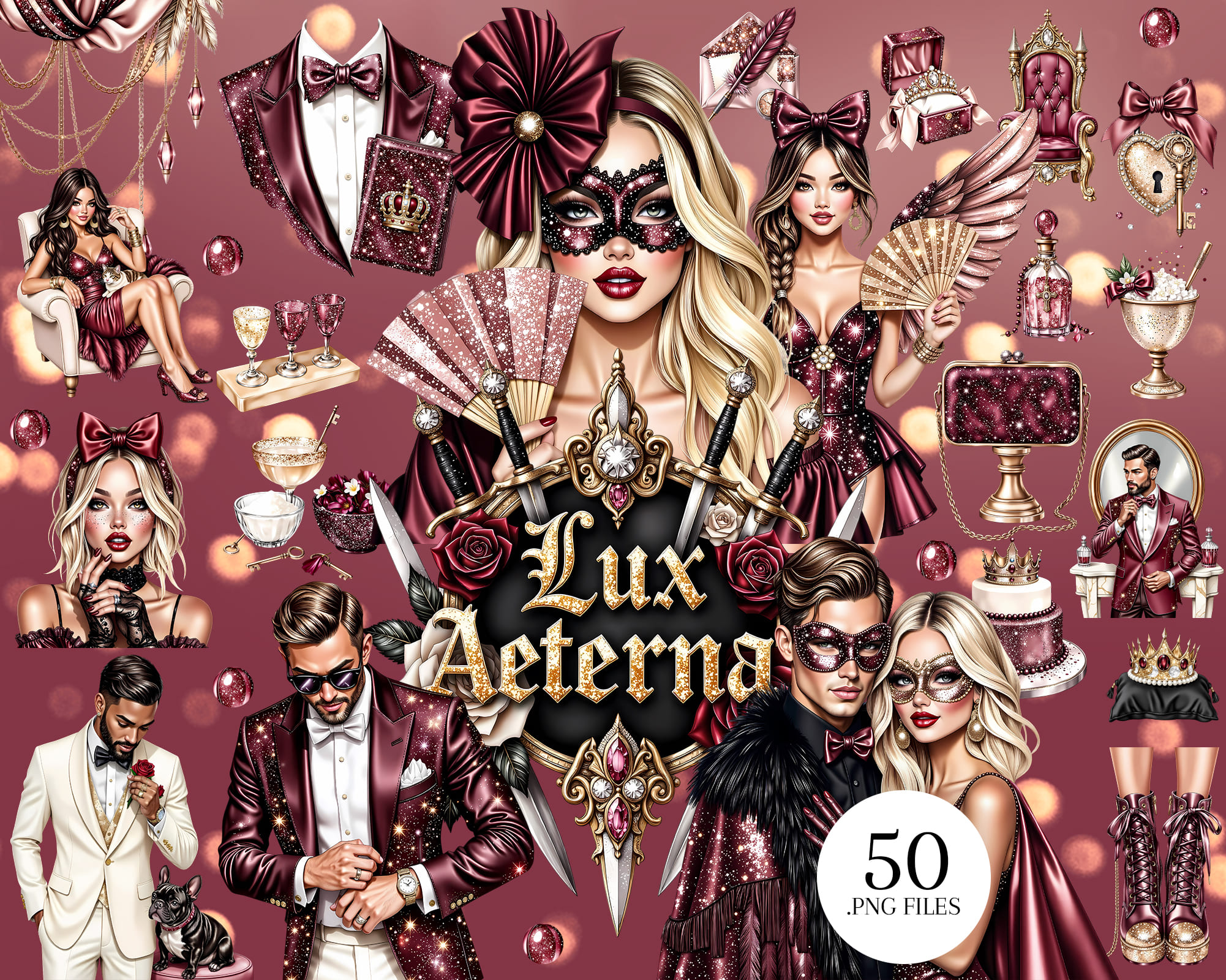 Shine with luxury using the Sparkle Lux Aeterna Clipart collection ✨. Perfect for wedding projects, fashion branding, prints, and elegant invitations. Includes 50 PNG files with transparent backgrounds.