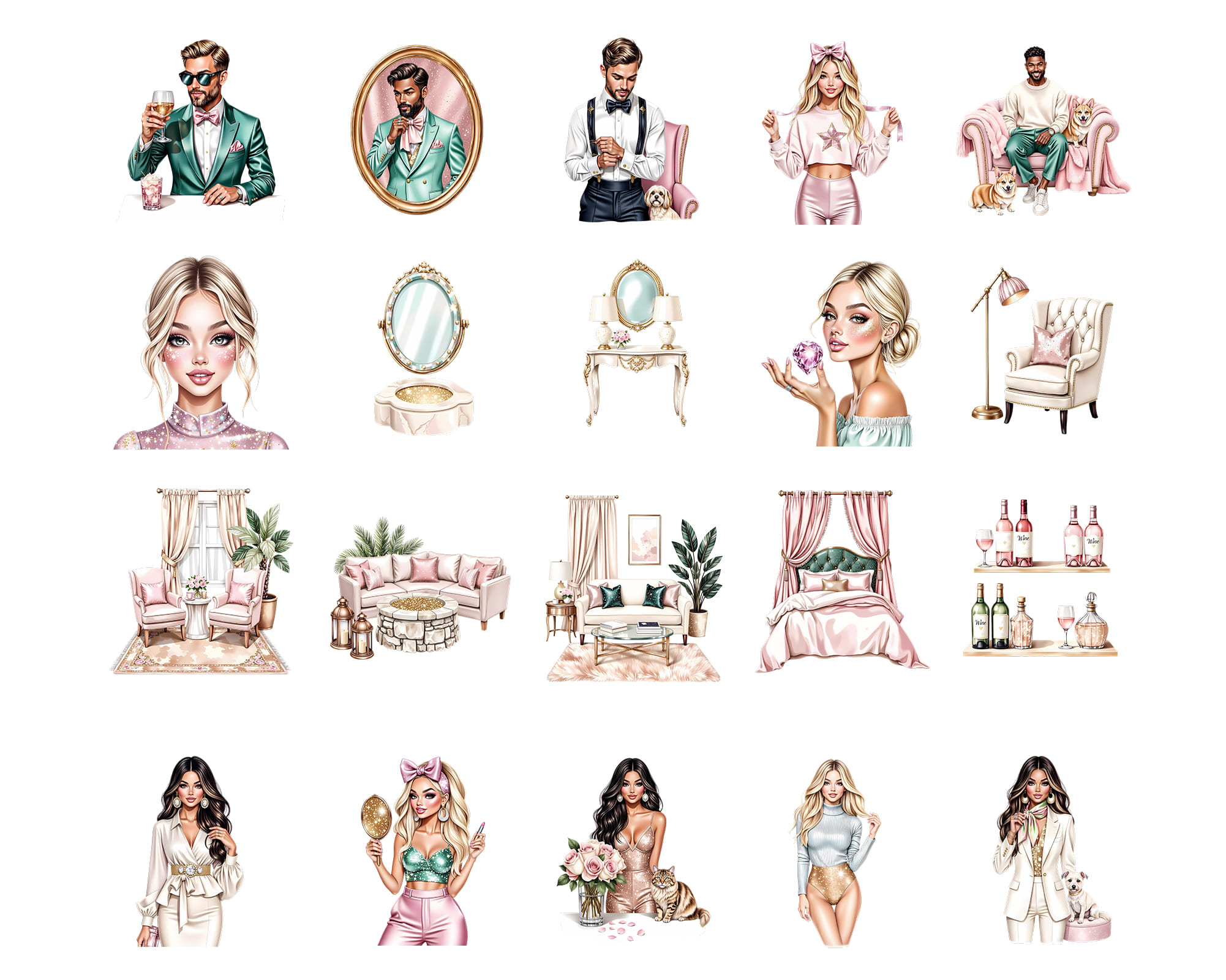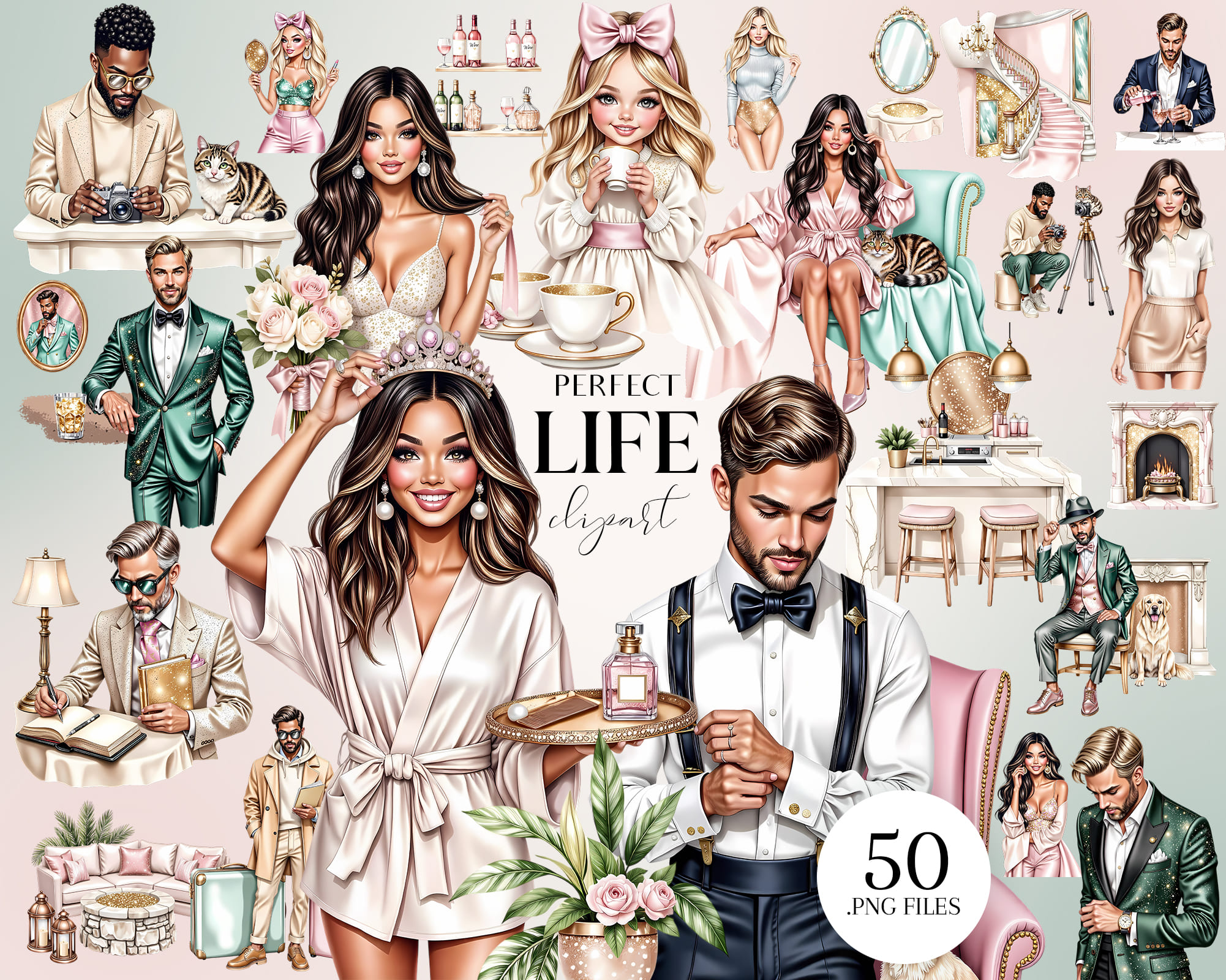 Create stylish lifestyle scenes with this Perfect Life Clipart set ✨. Perfect for branding, planners, logos, invitations, stickers, and digital art. Includes 50 PNG files with transparent backgrounds.