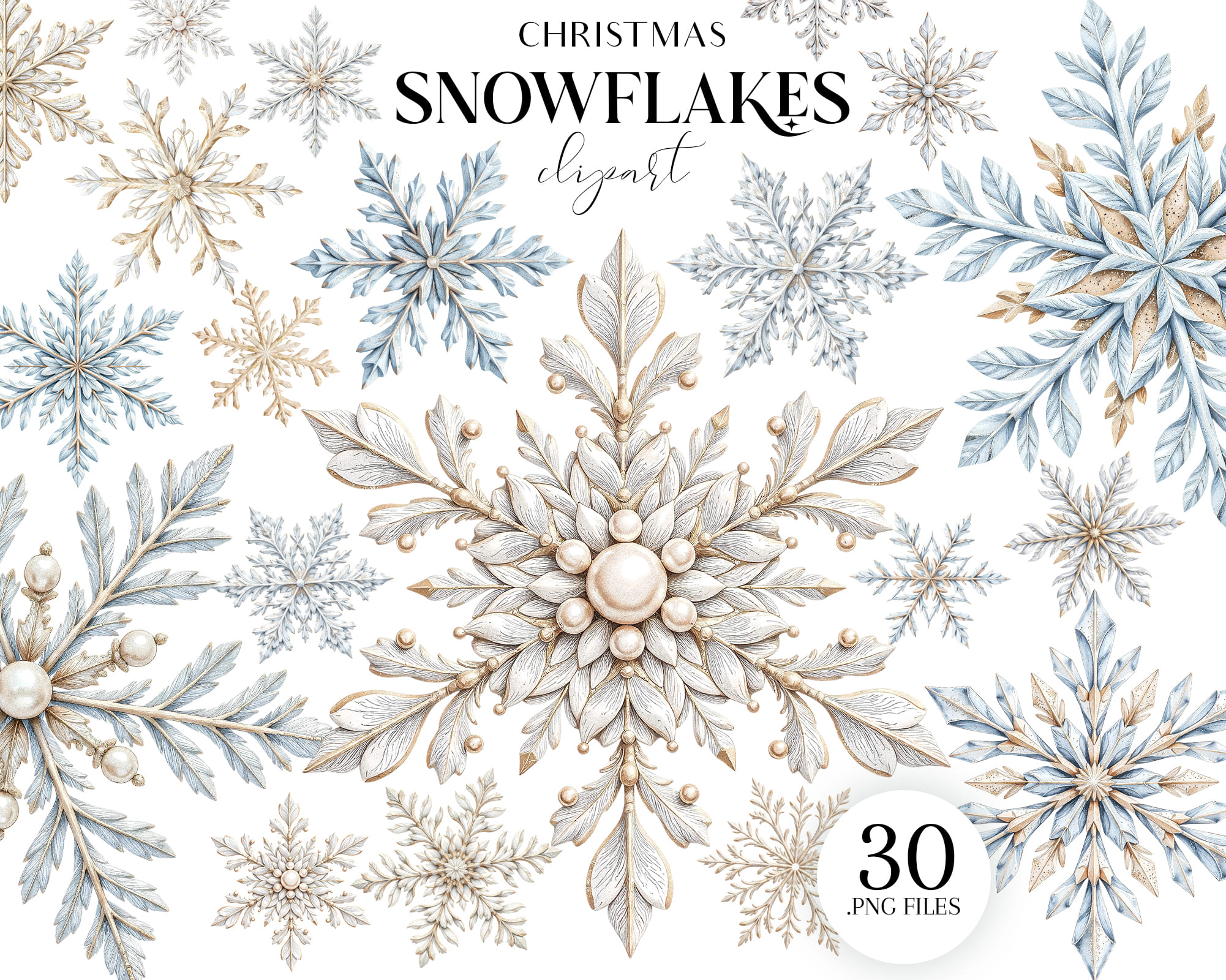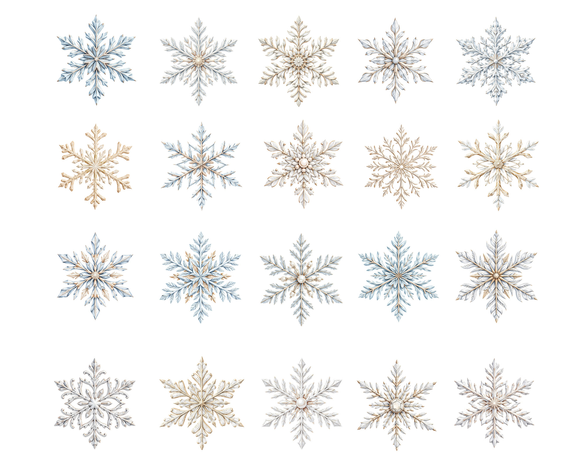 Snowflakes Clipart includes 20 elegant snowflake designs in PNG format. Transparent backgrounds and 300 DPI resolution.