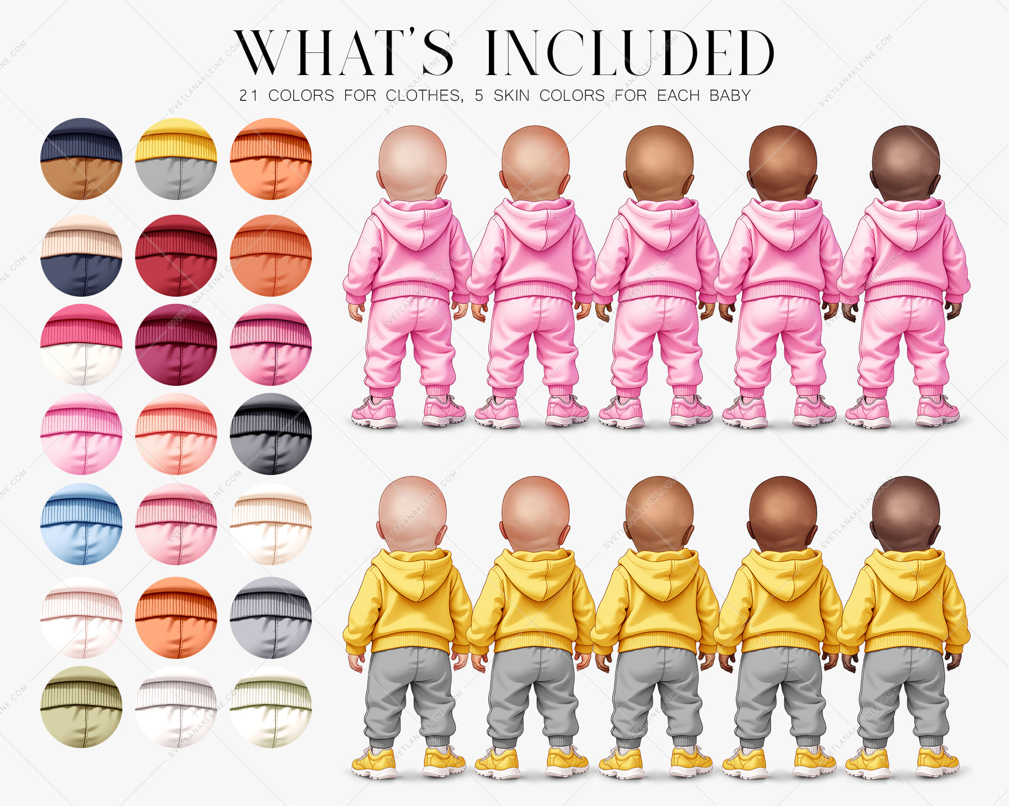Bring adorable charm to your designs with this Sport Babies Premade Clipart Set 👟✨ — a cozy, modern collection perfect for creating instant custom baby portraits. Each baby is fully pre-made with clothes and body already assembled. Simply add a hairstyle to finish your personalized artwork!