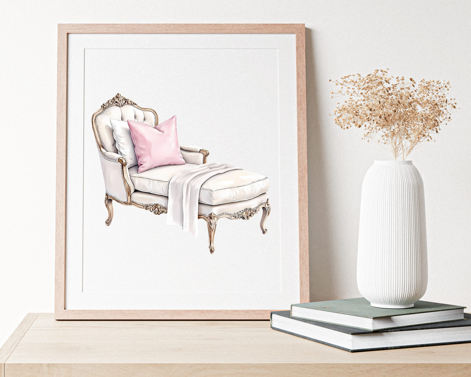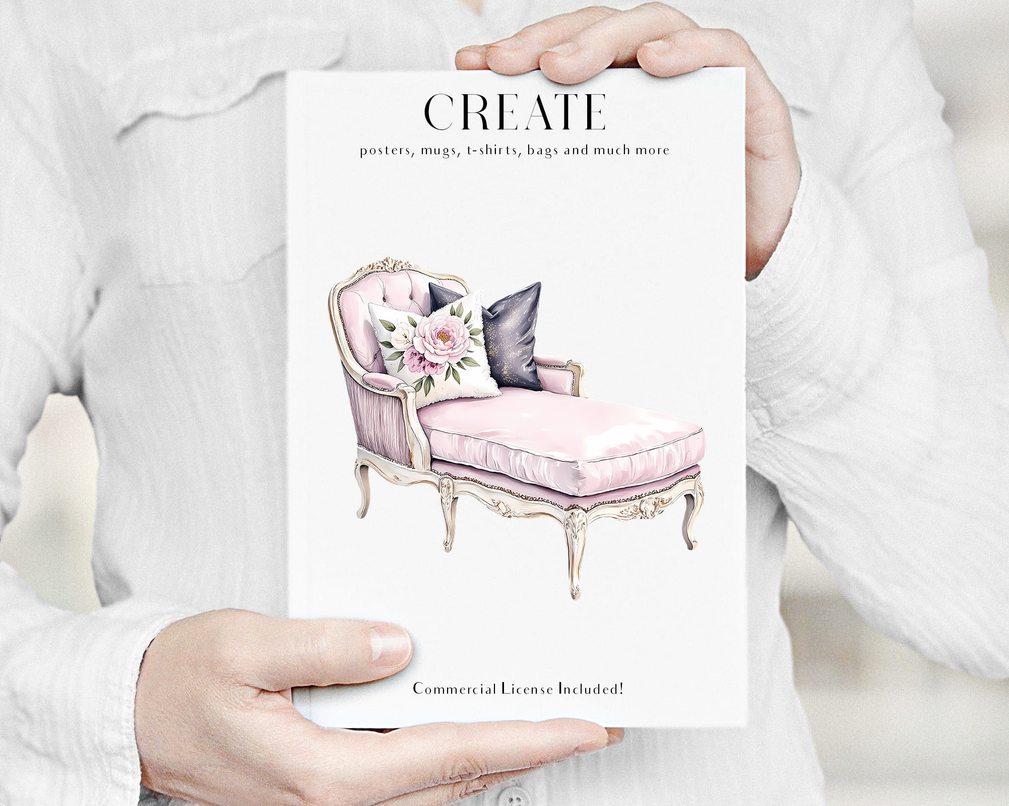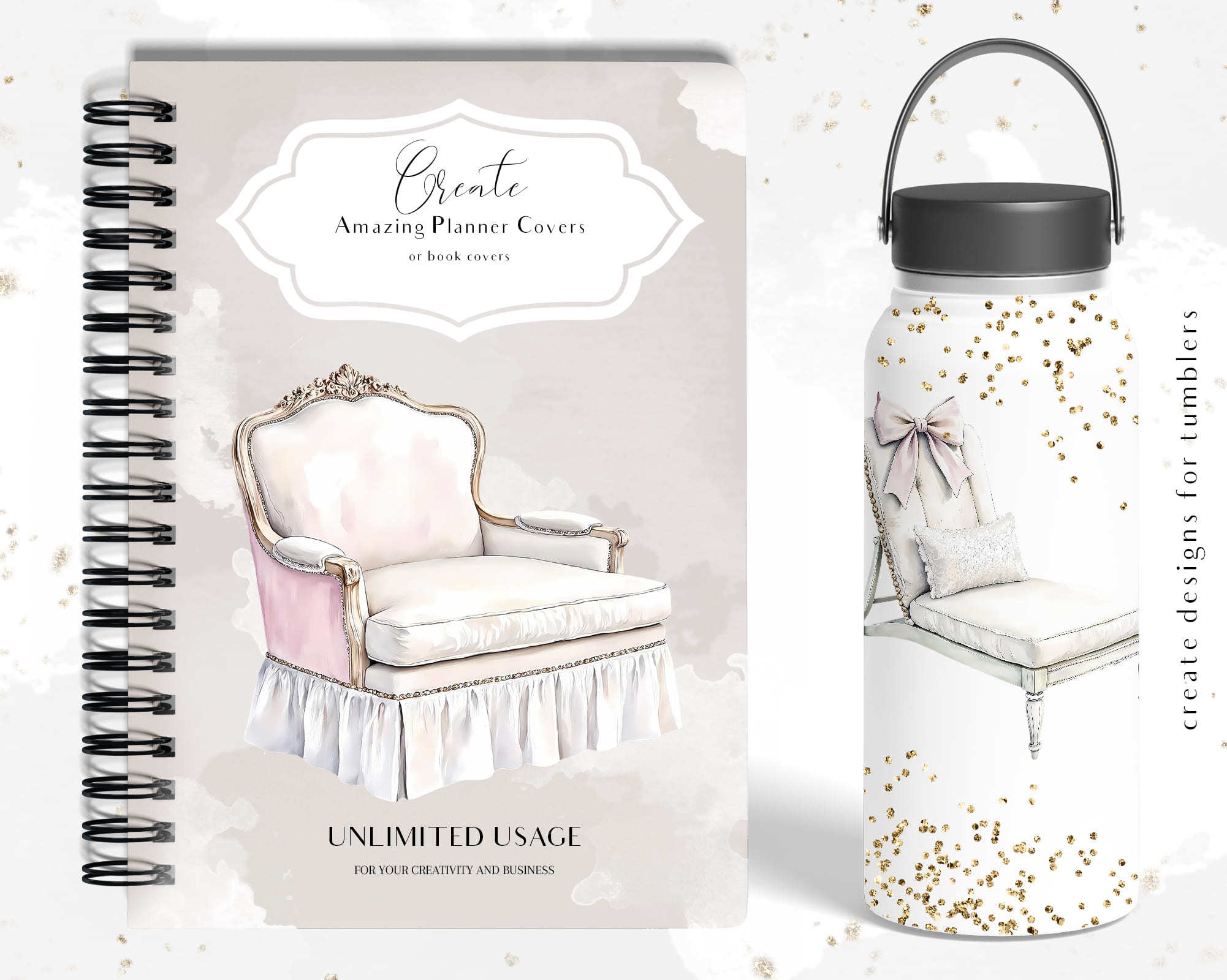 Bring a cozy vintage touch to your creative projects with this Pastel Armchairs Clipart Collection. Each chair is delicately painted with floral cushions, lace details, and romantic pastel tones — perfect for elegant interiors, journaling, or feminine design themes.