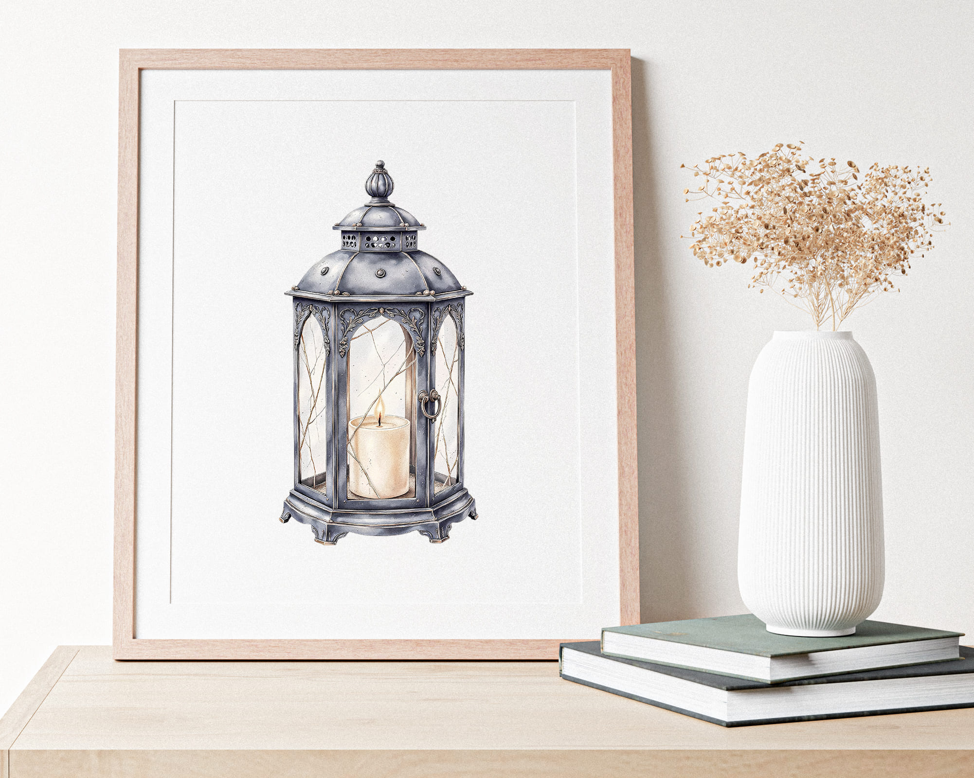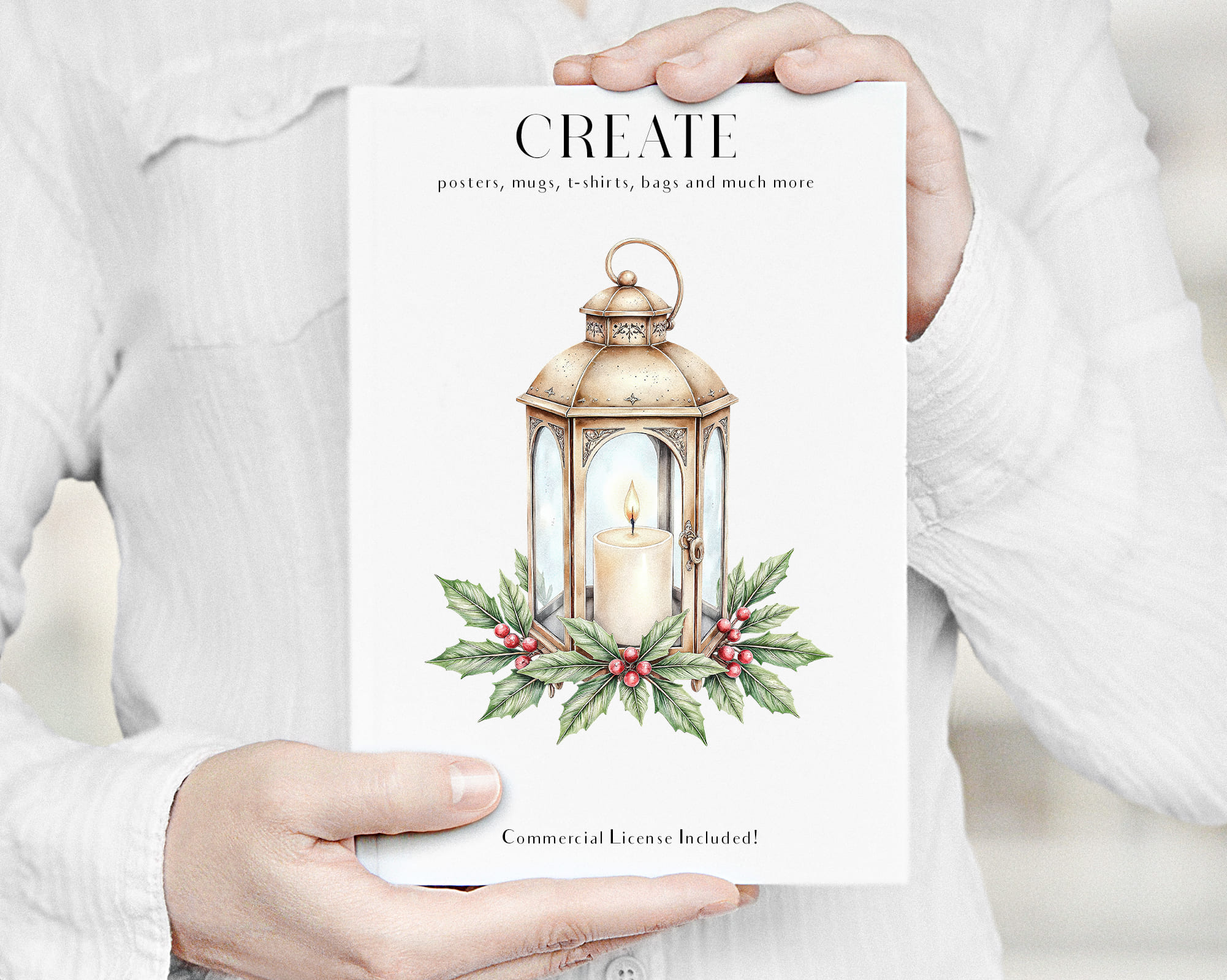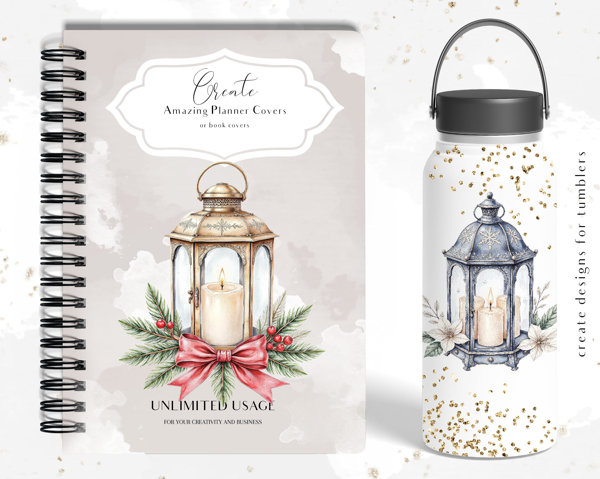 Vintage Lantern Clipart includes 30 elegant lantern illustrations with candles, bows, and festive details. All files are PNG format, 300 DPI, with transparent background.