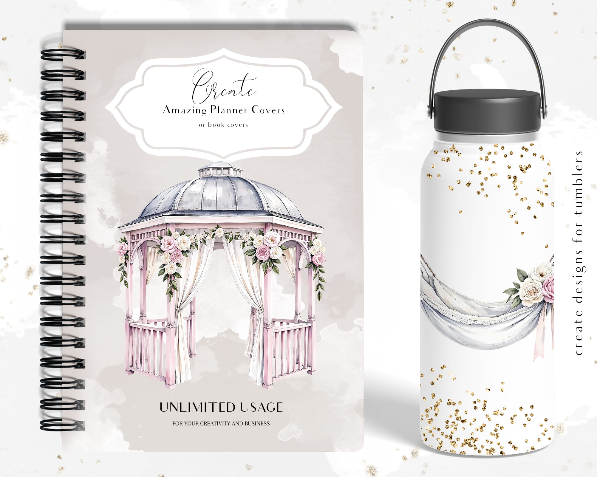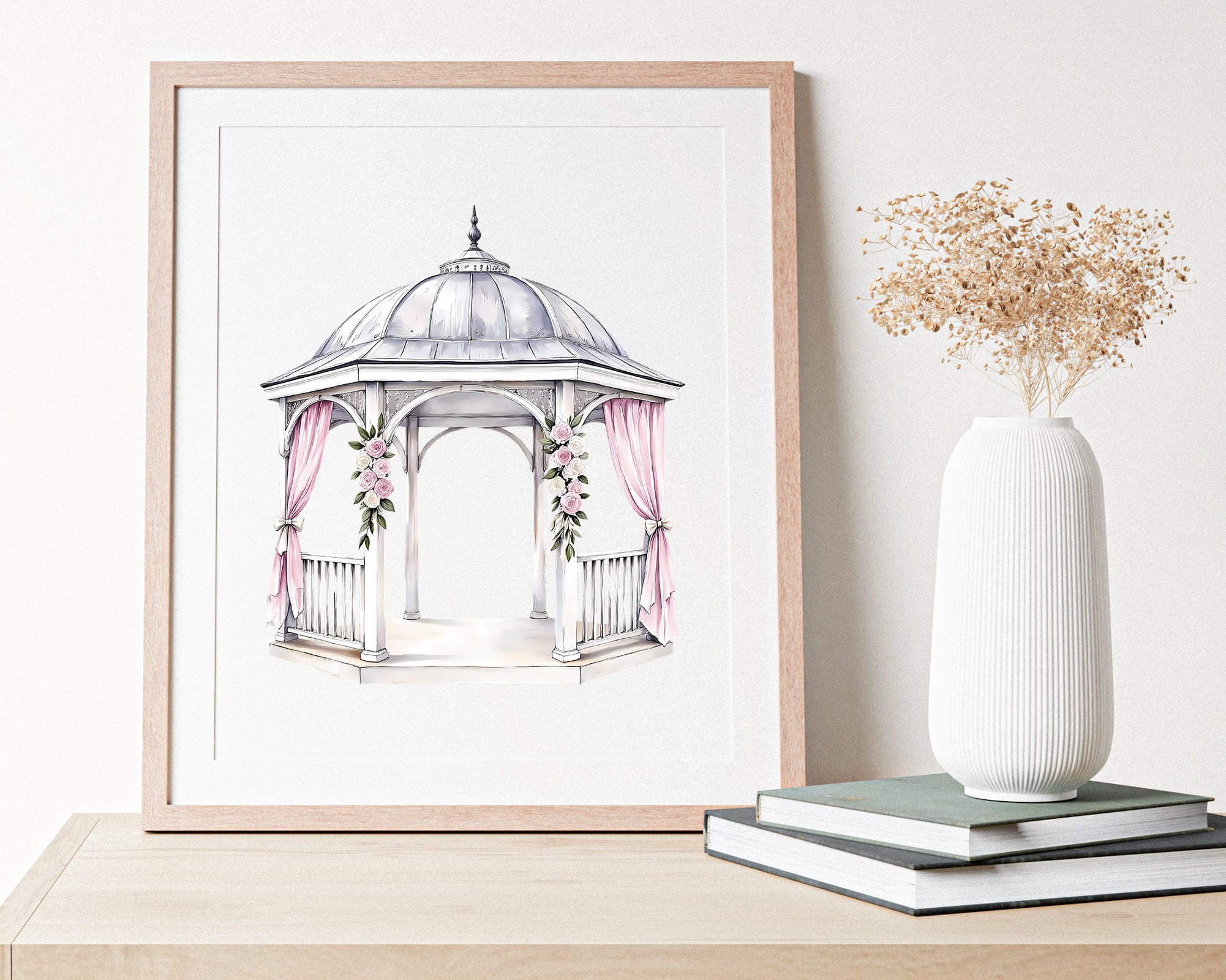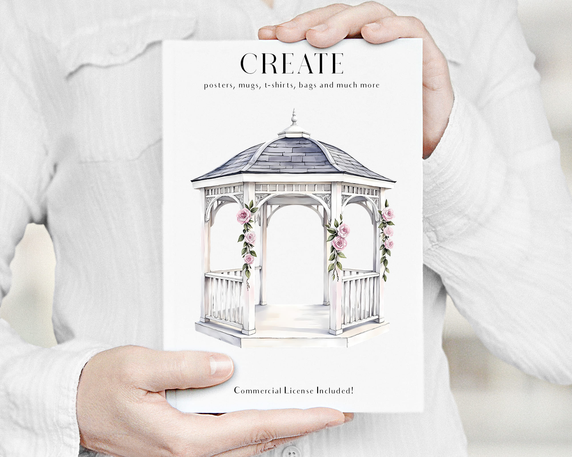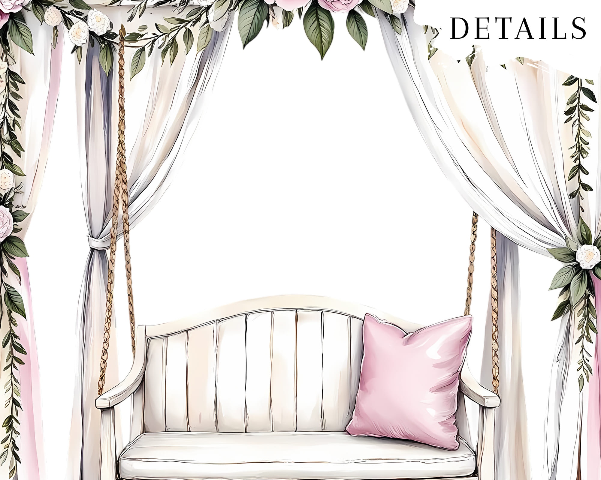 Create dreamy outdoor scenes with this Vintage Outdoor Clipart Set. Featuring 30 PNG files of gazebos, swings, pergolas, and floral garden décor in shabby chic pastel tones, this collection is ideal for invitations, garden party designs, digital scrapbooking, wedding stationery, and romantic branding projects.