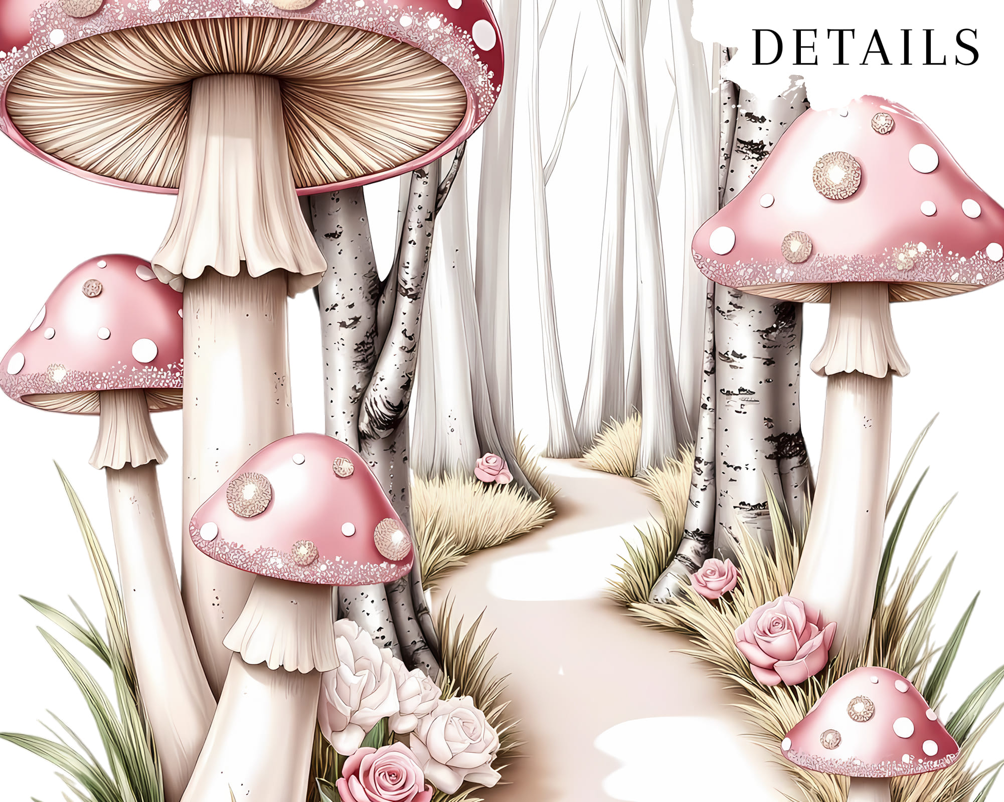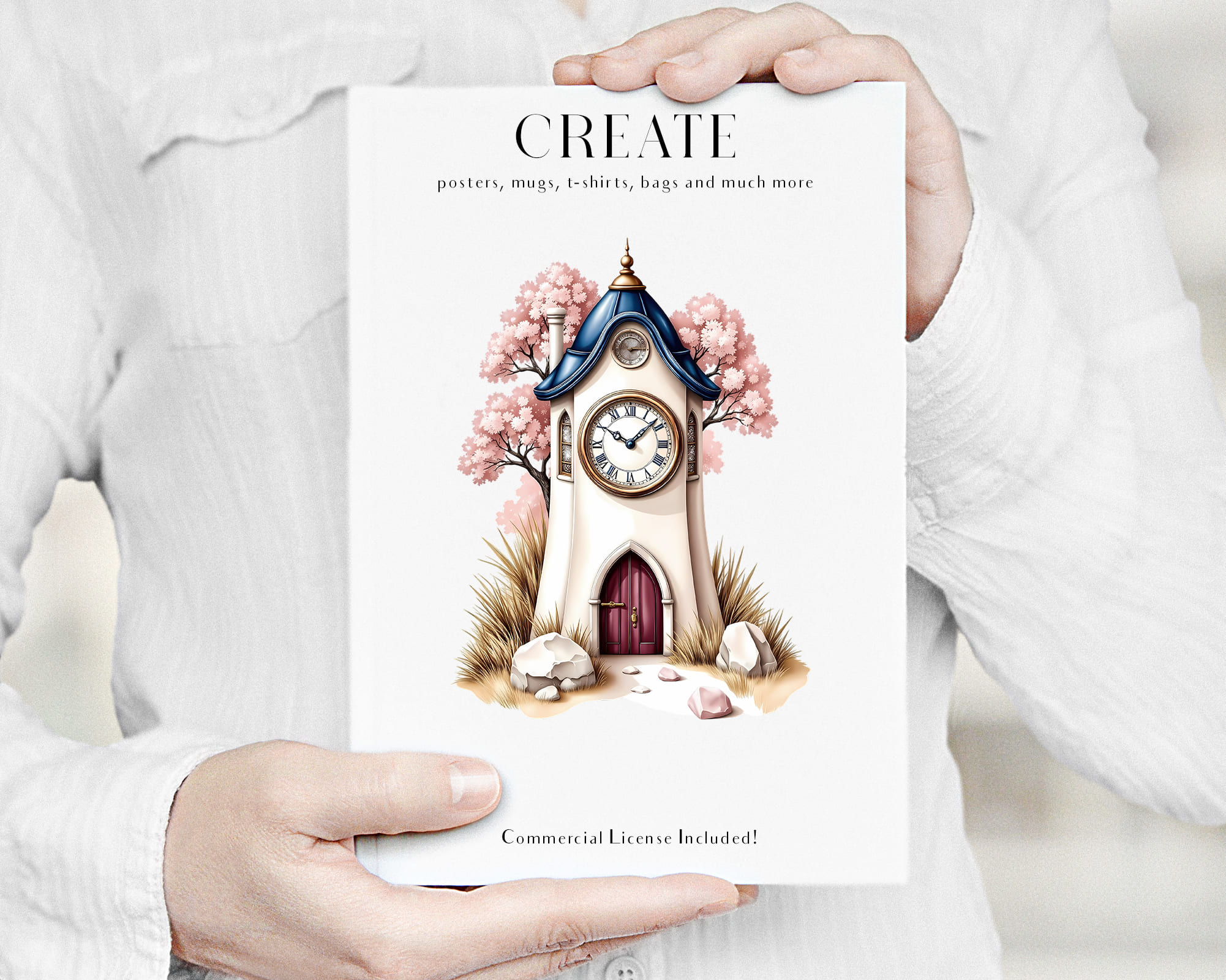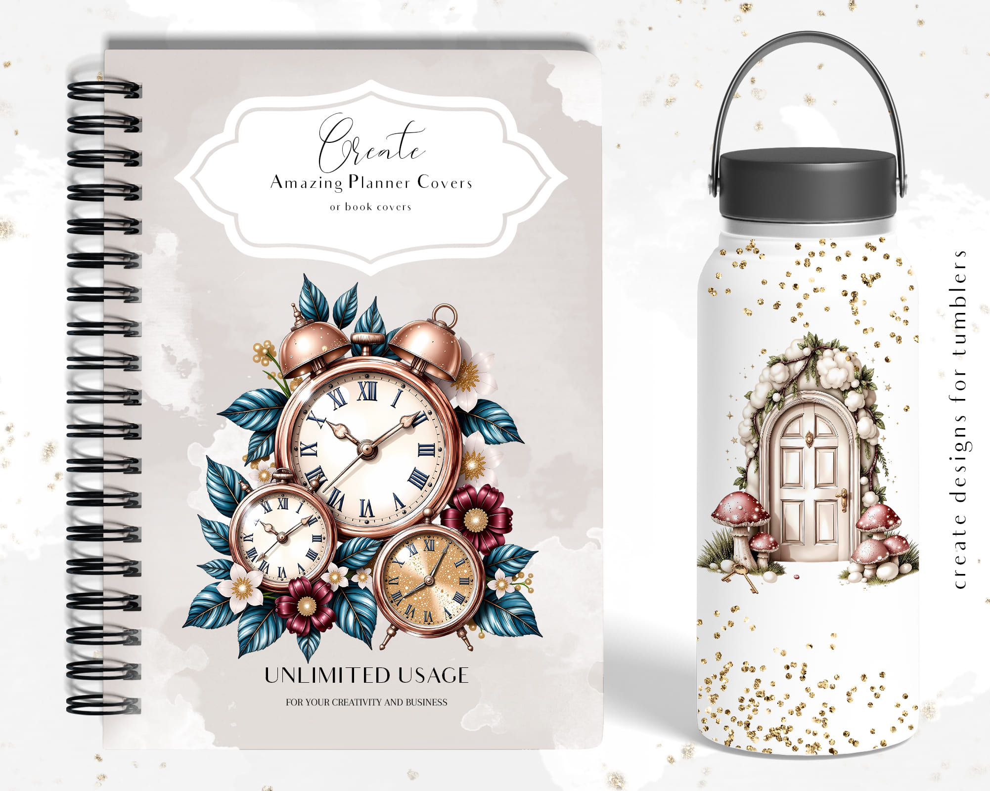 Create enchanting scenes with these elegant Wonderland Backgrounds 🌷. Featuring floral clocks, trees, hearts, and fairy doors — perfect for journaling, cards, and invitations. Includes 50 PNG files.